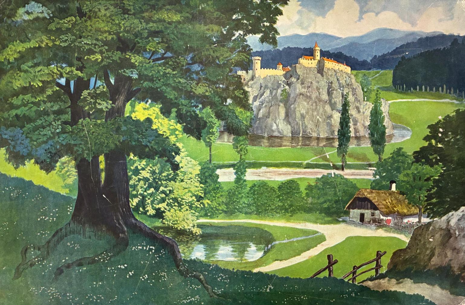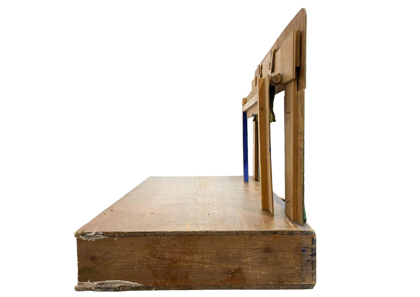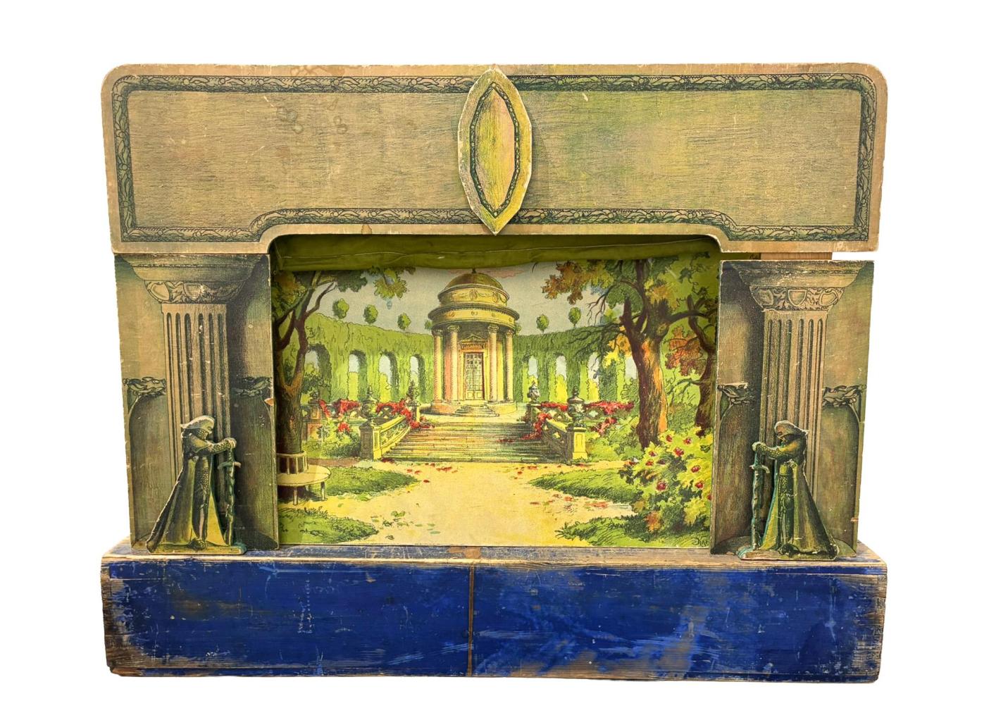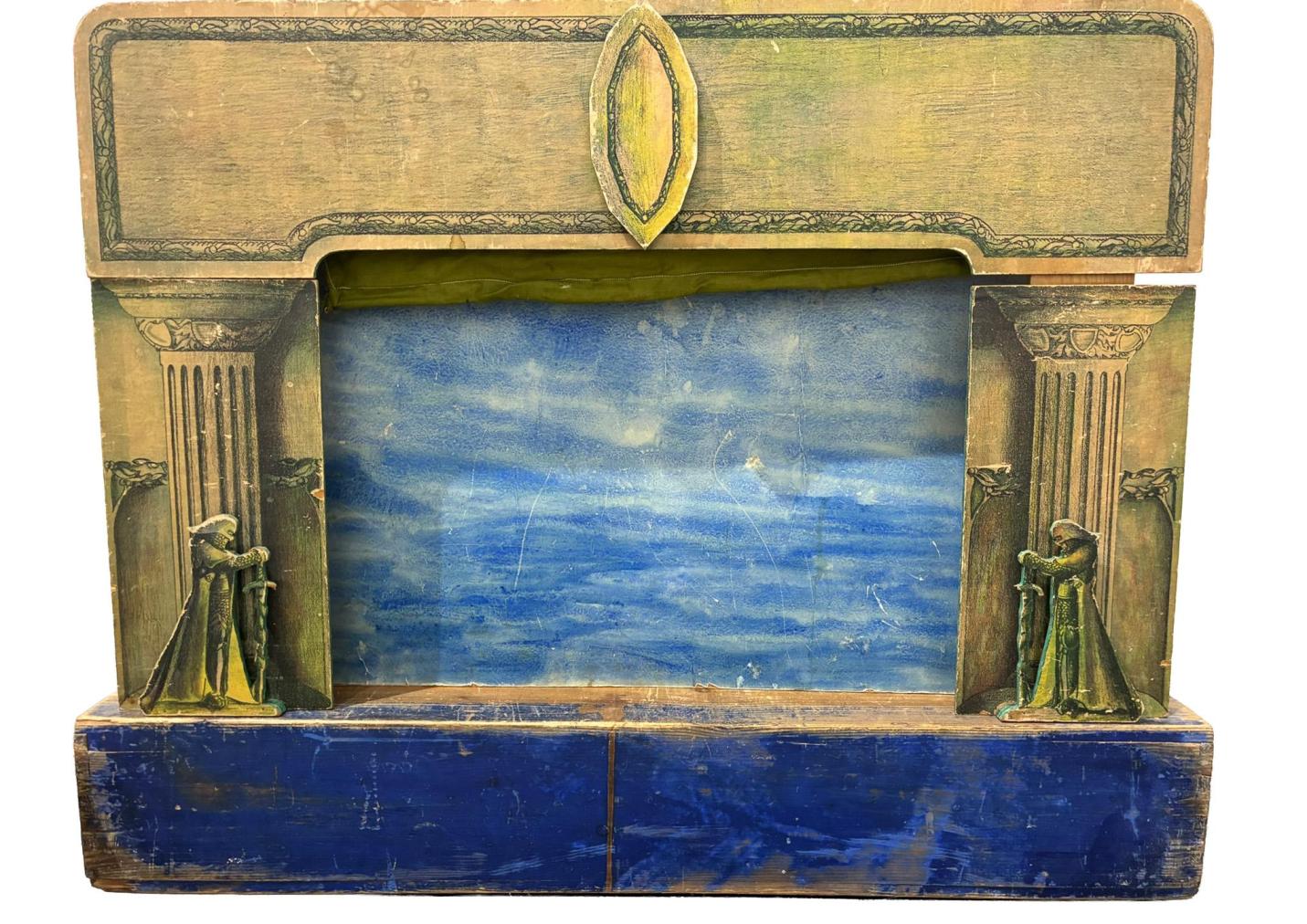 Kompletní loutkové divadlo i s různými typy kulis. Obsahuje: interiér paláce i starobylé chaloupky, prostory přírody i starého města s vysokými domy. Dále jedny kachlová kamna, stoličku, lavici, královský trůn a přírodniny jako pařez či lávku. K dispozici i dřevěné nástavce. Divadlo se dá celé složit a uschovat do kufříků.
