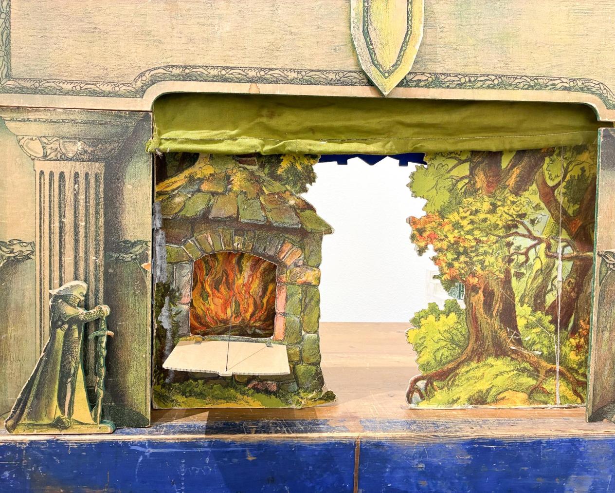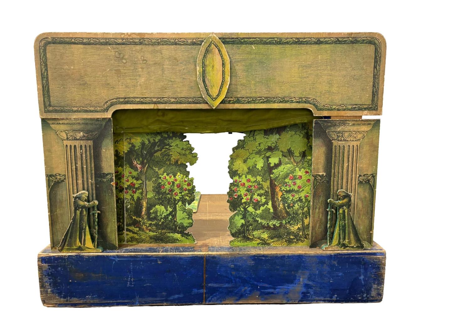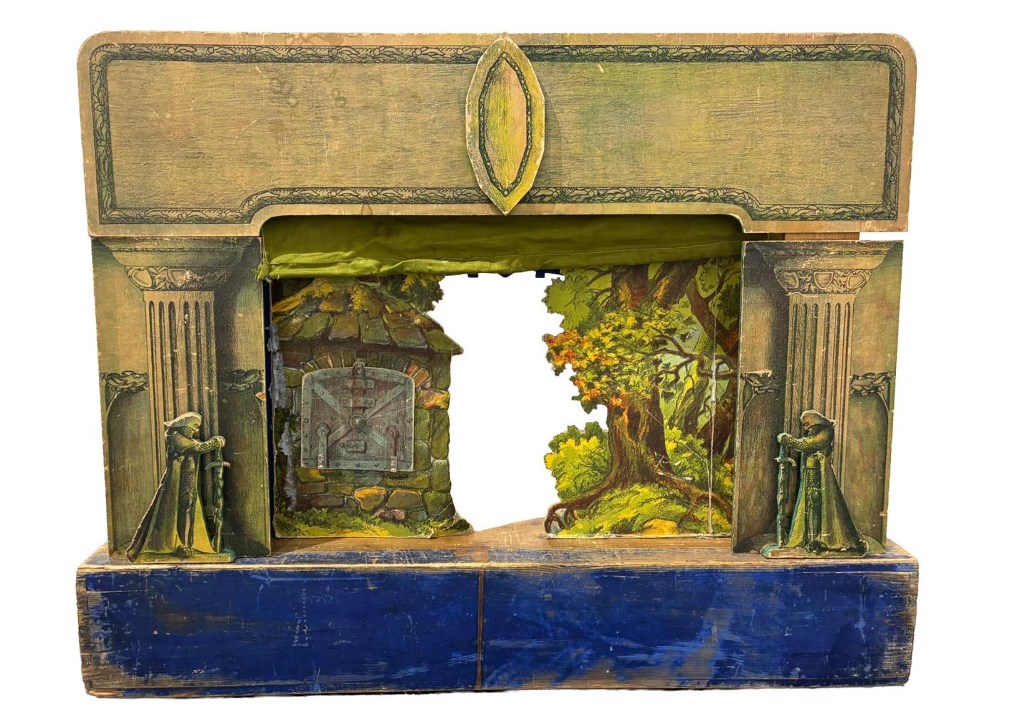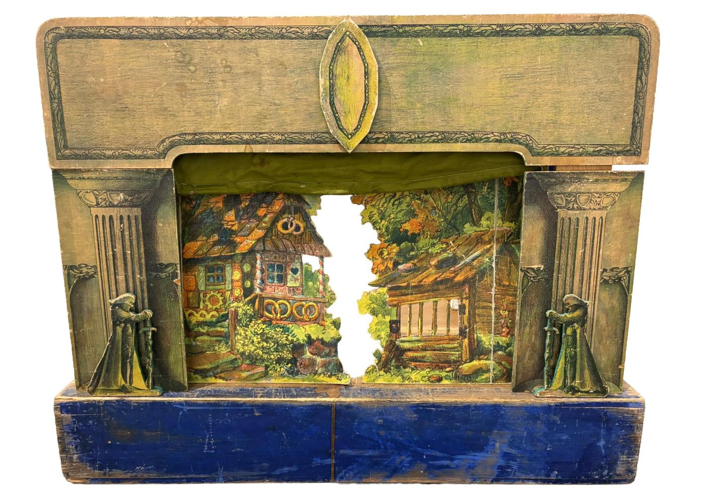 Kompletní loutkové divadlo i s různými typy kulis. Obsahuje: interiér paláce i starobylé chaloupky, prostory přírody i starého města s vysokými domy. Dále jedny kachlová kamna, stoličku, lavici, královský trůn a přírodniny jako pařez či lávku. K dispozici i dřevěné nástavce. Divadlo se dá celé složit a uschovat do kufříků.