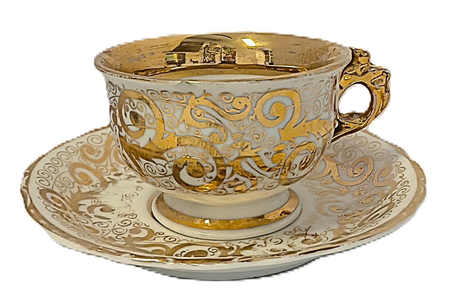 Porcelánový šálek s podšálkem zlacený