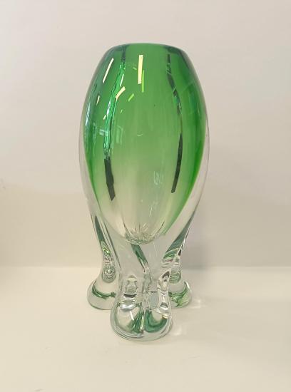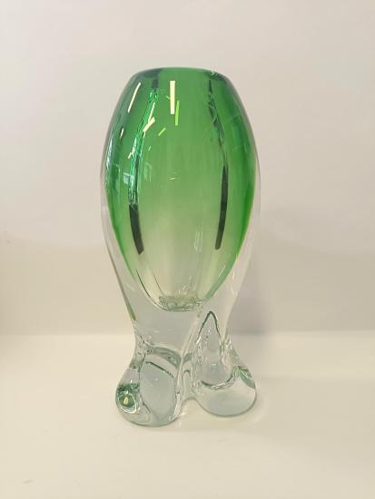 Egermann- Nový Bor Zelená váza z hutního skla - Egermann Nový Bor