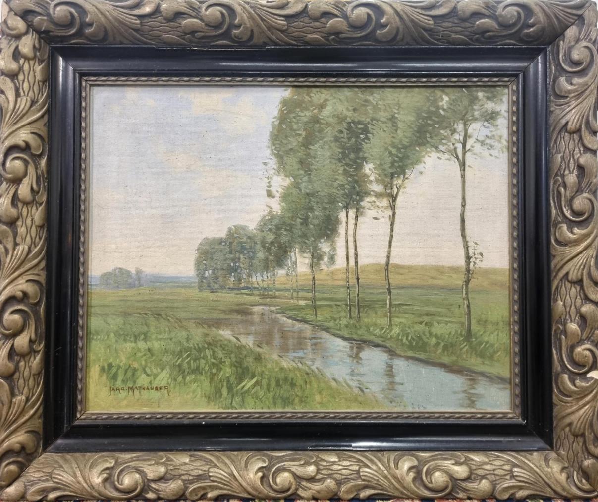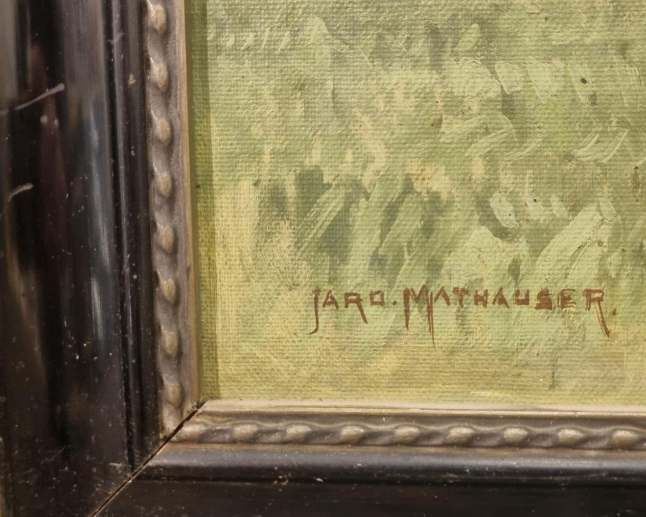 Prohlednout celou aukciSkvělá krajinomalba od autora Jaroslava Mathausera s jeho klasickým motivem stromořadí u vody. Umělec dokonale vytváří perspektivu, v předním plánu se rýsuje pokroucené tělo břízy s jemnými detaily, které se postupně vytrácí v dáli. Břízy se zrcadlí ve vodní hladině a z krajiny dýchá klid. Olej na kartonu, rámováno, rozměry s rámem 63 x 52 cm, rozměry díla 47 x 36 cm. Signováno v levém dolním rohu "Jaro. Mathauser". Rám lokálně poškozen.