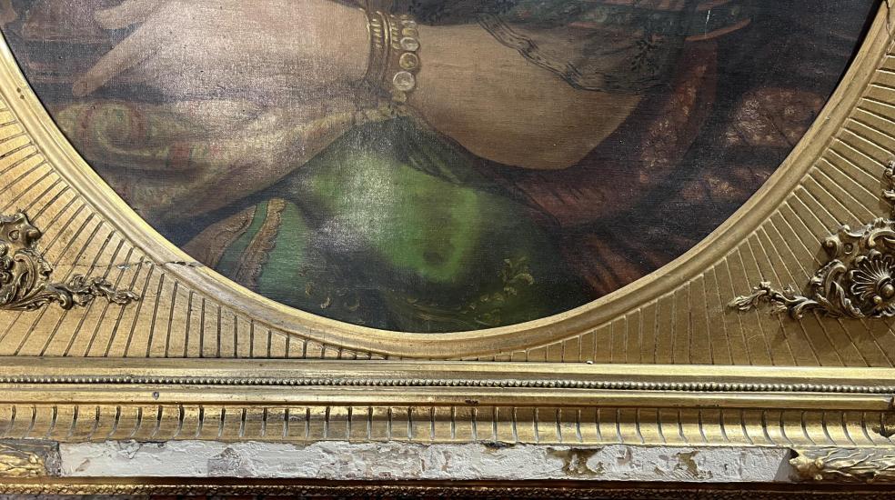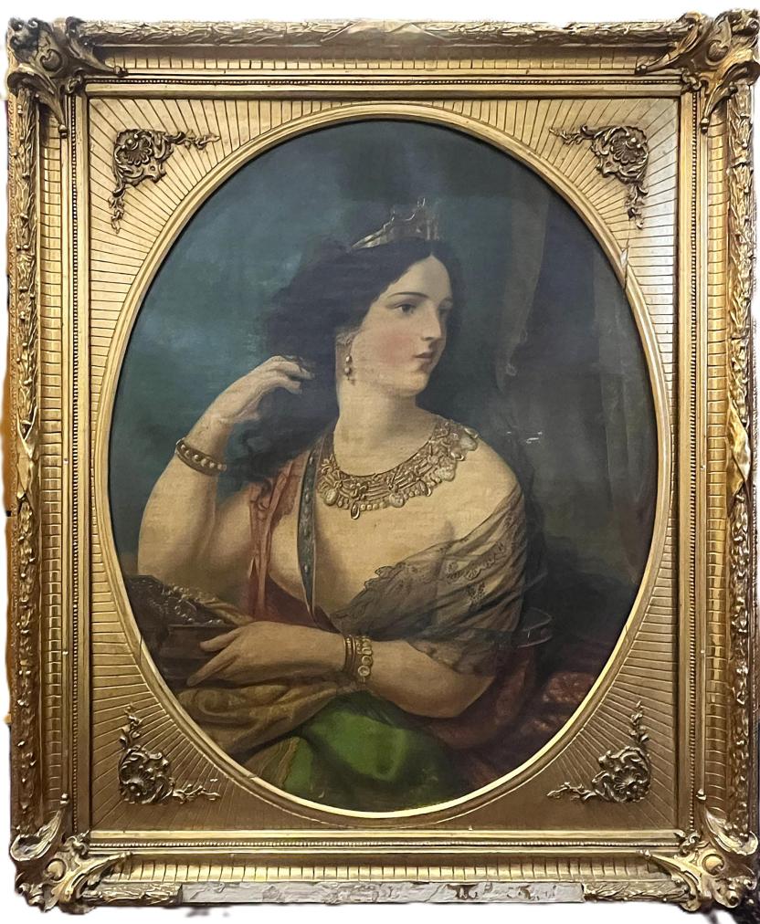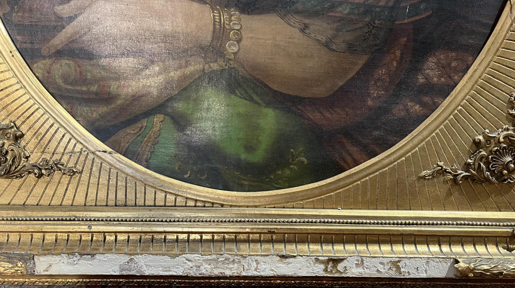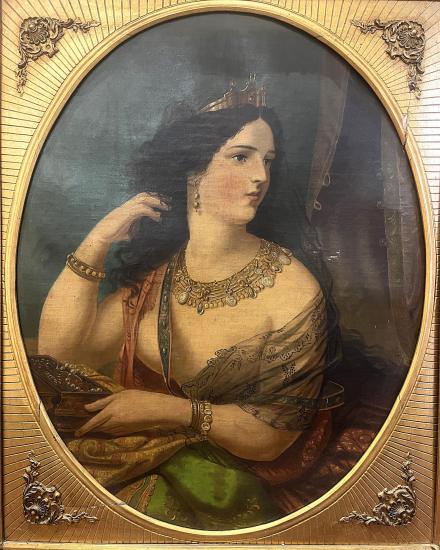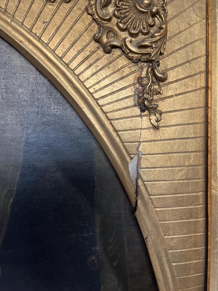 Prohlednout celou aukciOválný portrét krásné ženy v honosném zlatém rámu, od neznámého autora. Olej na plátně, zarámováno do dřevěného rámu zlaté barvy. Malíř si dává záležet na detailech, špercích a na precizní draperii velmi lehké, až průsvitné látky. Jemné rysy modelky dodávají na urozeném dojmu. Rozměry malby jsou 76 x 60 cm a celkové rozměry s rámem jsou 82 x 97 cm. Rám je lokálně poškozen na spodní straně, dále má pár prasklin viz foto. Nesignováno.