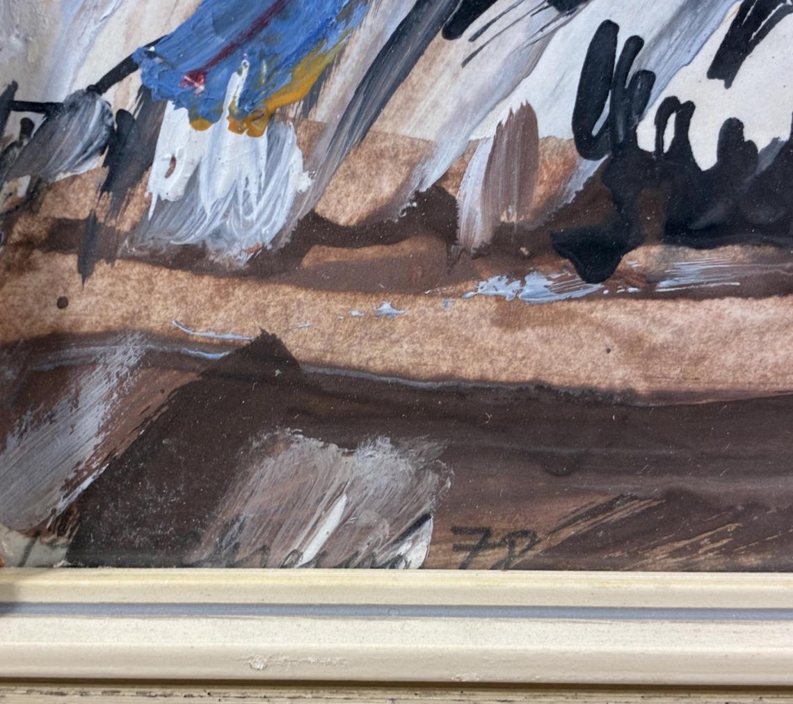 Prohlednout celou aukciPříjemné dílo s abstraktním námětem. V díle je zachycena energie umělce, když obraz tvořil, hbité tahy štětecem napovídají, že autorův záměr byl vytvořit silně expresivní dílo. Divák v něm může hledat skryté významy, či prostě vstřebávat energickou atmosféru, která z díla dýchá. Kombinovaná technika na papíře, rámováno pod sklem, rozměry s rámem 43 x 35 cm, rozměry díla 34 x 25 cm. Signováno vlevo dole, nečitelné.