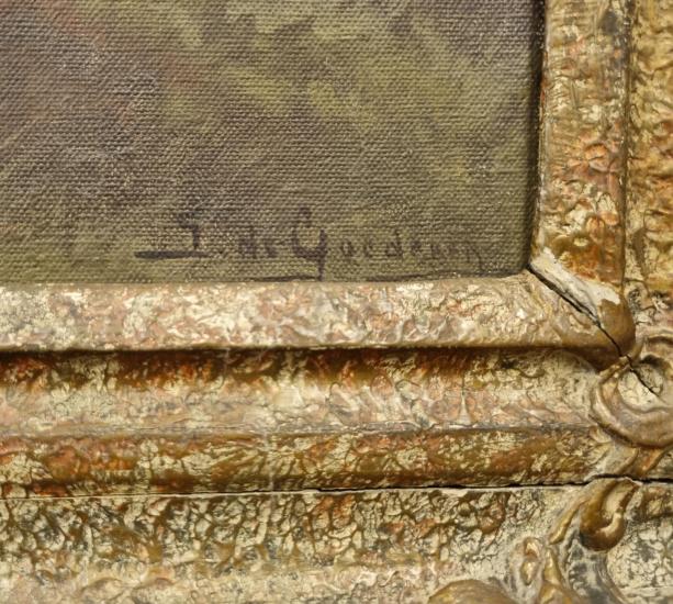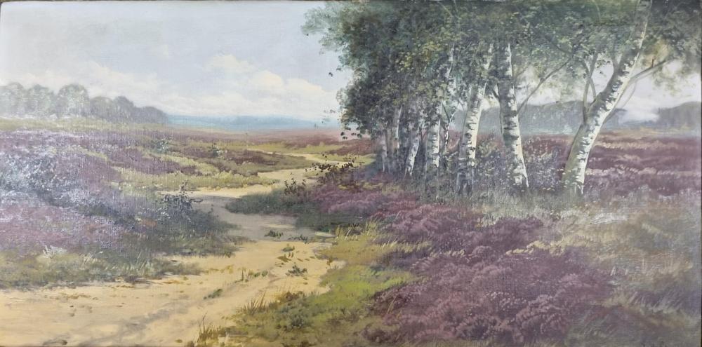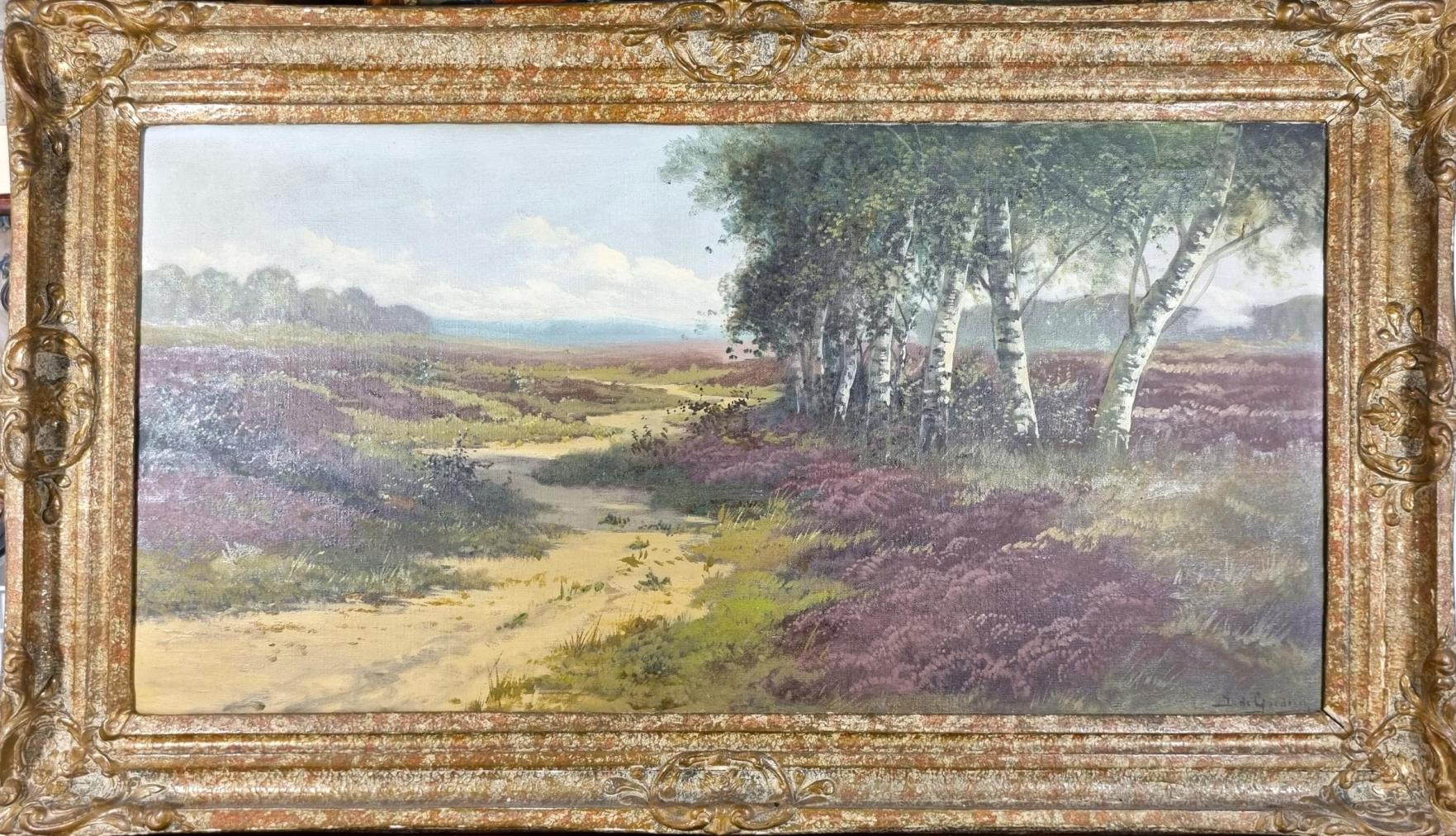 Krajinná malba od holandského malíře jménem Jan de Goetheren. Autor vyobrazuje pohled na březový remízek obklopený krásně zbarveným vřesovištěm a úzkou pěšinu, která vede od popředí obrazu až za horizont. Olej na plátně. Zarámováno do masivního zdobného rámu se zlatou patinou. Signatura se nachází na pravé straně dole: J. de Goederen. Rám má na pár místech drobné oťuky a praskliny ve štuku.
