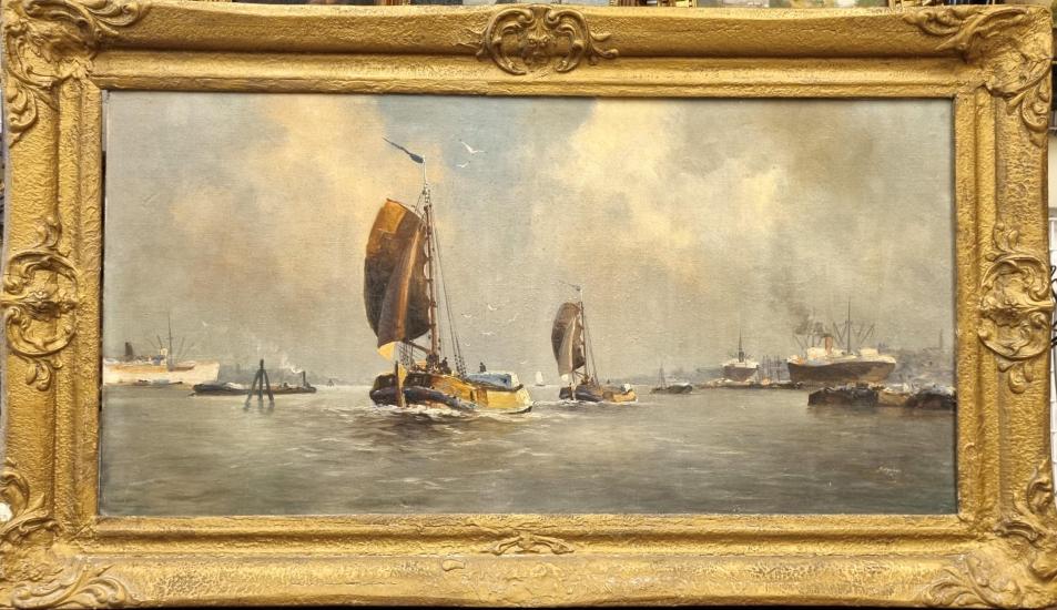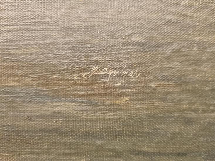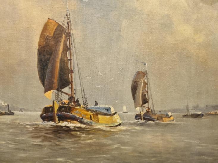 Dílo vyobrazující několik rybářských lodí, které vyplouvají na širé moře z bezpečí přístavu. Malba od autora jménem M. Drulman. Malíř skvěle zachycuje detaily vln a měkké světlo ranního slunce. Olej na plátně, podlepené na kartonu. Zarámováno do masivního zdobeného rámu se zlatou patinou. Rozměry díla jsou 98 x 49 cm, rozměry s rámem jsou 119 x 69 cm. Signováno v pravém dolním rohu M. Drulman.