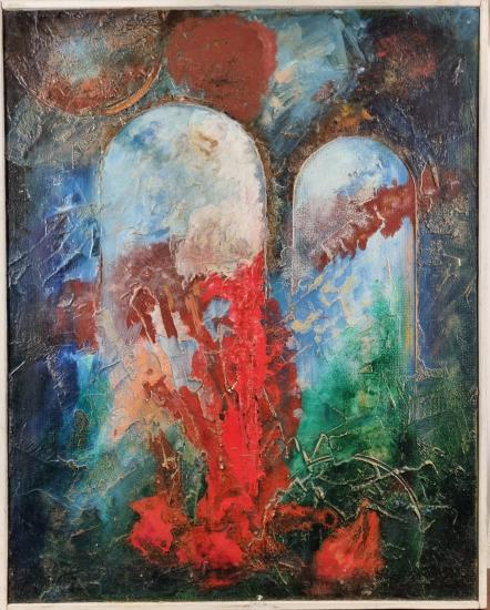 Zajímavé dílo plné struktur a reliéfních nánosů barvy. Centrálním námětem jsou dva oblouky, které připomínají viadukt. Samotný most je symbolickým motivem, který doplňuje exploze barev a struktur. Obrazu dominuje červený odstín v centru díla. Kombinovaná technika na sololitu, rámováno, rozměry s rámem 48 x 39 cm, rozměry díla 47 x 38 cm.