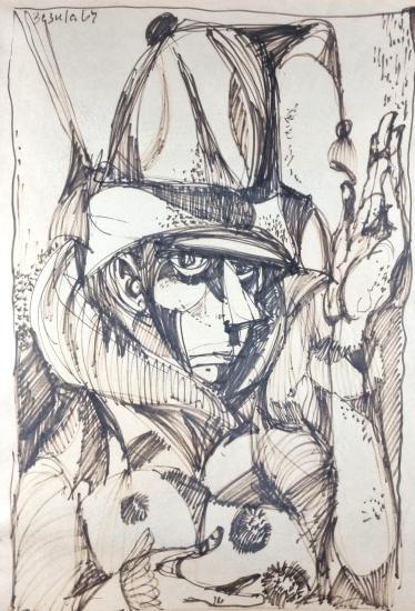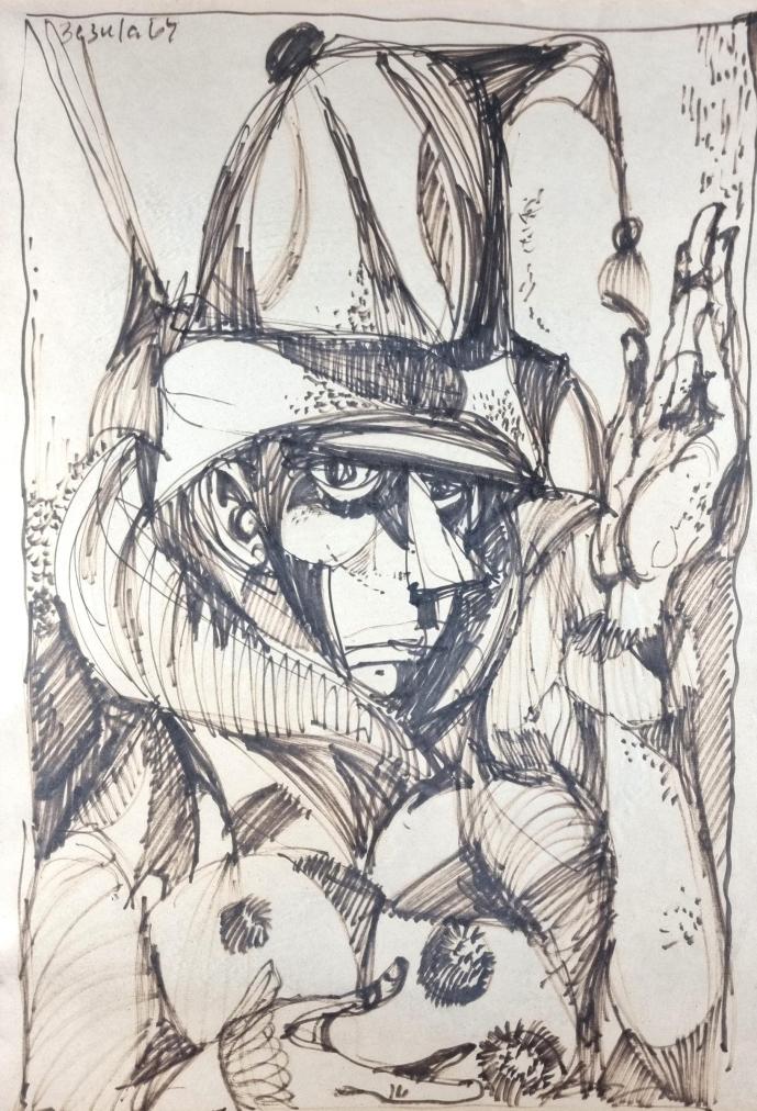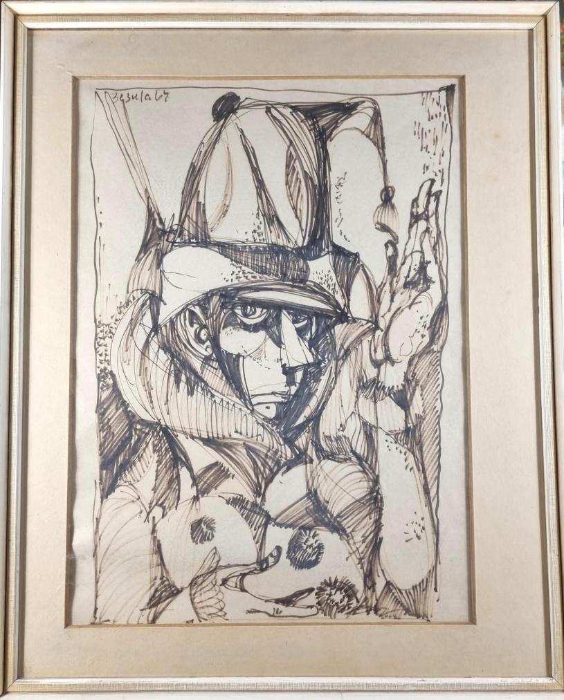 Portrét od Milana Zezuly provedený za pomoci chaotické kresby. Ve změti čar se podobizna téměř ztrácí, pod rozměrným čepcem se rýsují oči muže, má odměřený, pyšný výraz ve tváři. Jeho oblek působí honosně - kolem krku má výrazný límec a oděv má mnoho ozdob. Fixa na papíře, rámováno pod sklem, rozměry s rámem 71,5 x 57,5 cm, rozměry díla 57 x 40 cm. Signováno vlevo nahoře "Zezula 64".