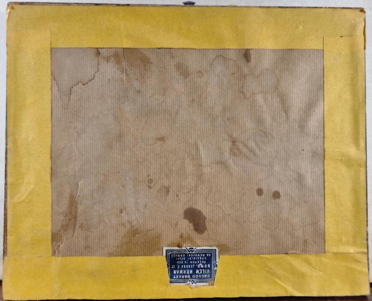 Drobná malba vyobrazující dívku v kroji. Autor dokáže prostřednictvím jemných tónovaných ploch bez ostrých linek a hran vytvořit půvabný portrét oslavující krásu folklóru. Pozadí tvoří zelené listy, kterými prostupují paprsky slunce. Akvarel na papíře, rámováno pod sklem, rozměry s rámem 32,5 x 26,5 cm, rozměry díla 20 x 13 cm. Nesignováno.
