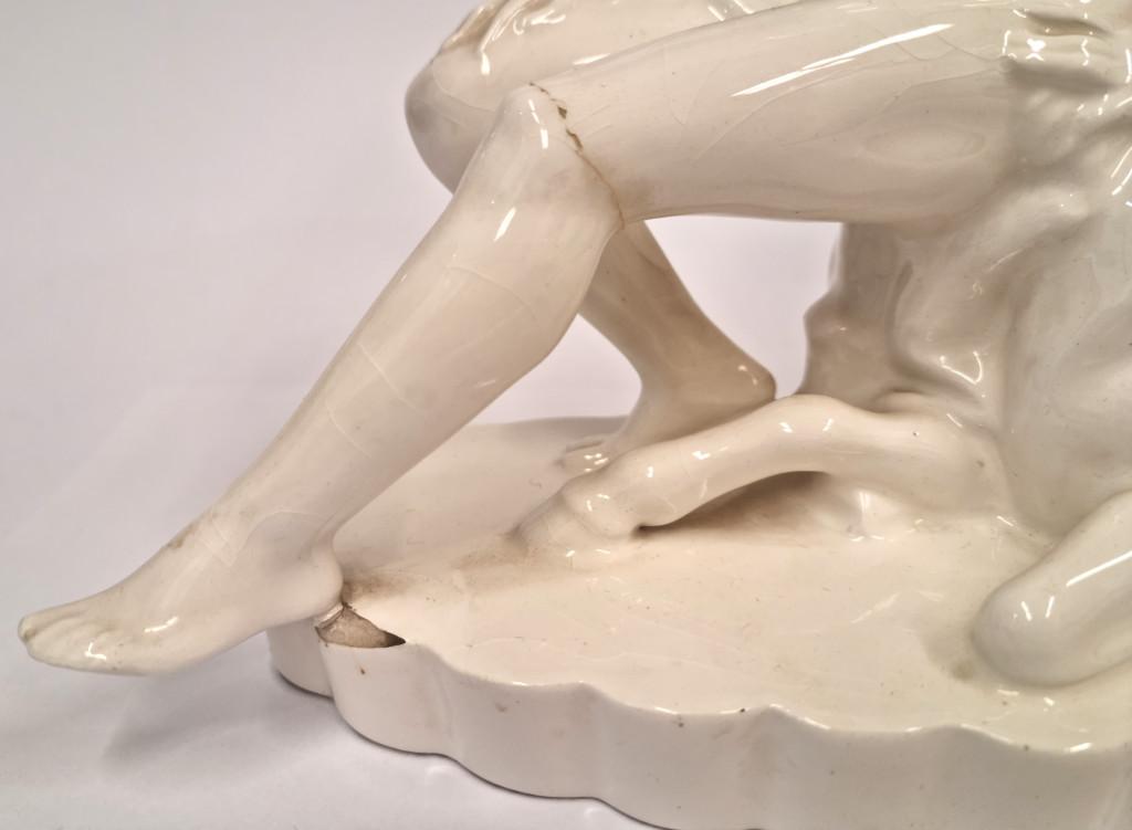 Keramická soška ženy od Huberta Kovaříka - Svitávka je vysoká 23 cm, šířka cca 24 cm. Signováno HKO viz foto. Lepená levá noha viz foto.