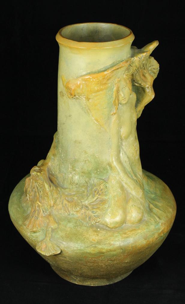 Tato váza není značena, má zespodu pouze čísla modeléra. Patrně se však jedná o Bechyni. Až na drobný odštěpek o velikosti 2x3 mm /viz foto/ je v dobrém stavu.
