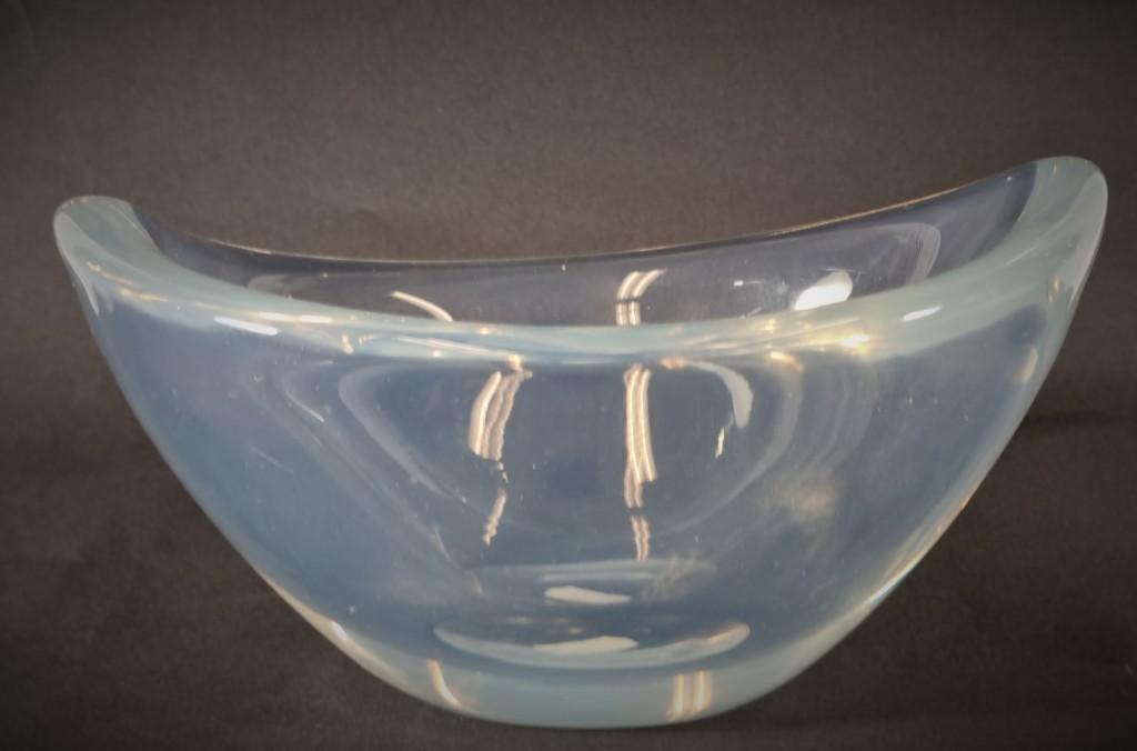 Skleněná mísa o rozměrech: výška 10 cm, šířka 22 cm. Bez poškození.
