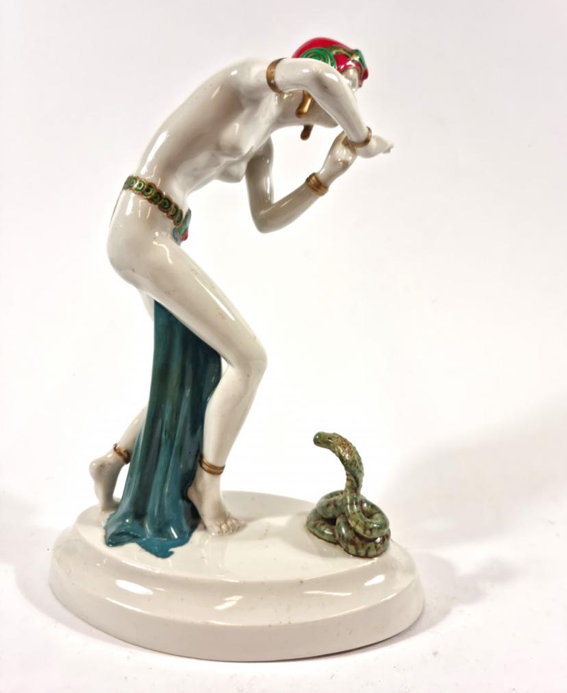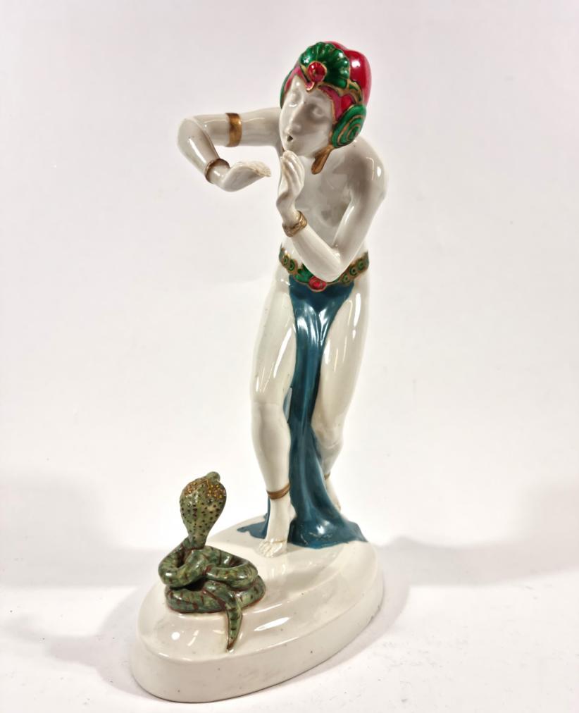 Porcelánová tanečnice s kobrou v barevné variantě, výška 24 cm,