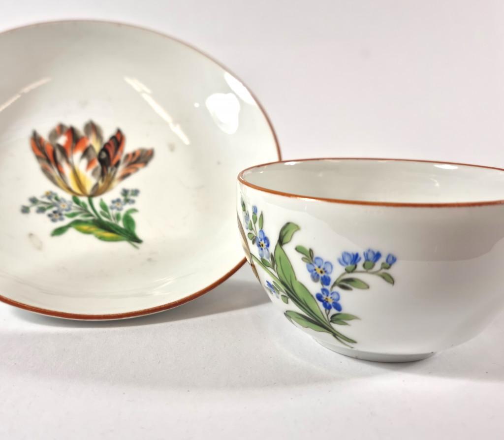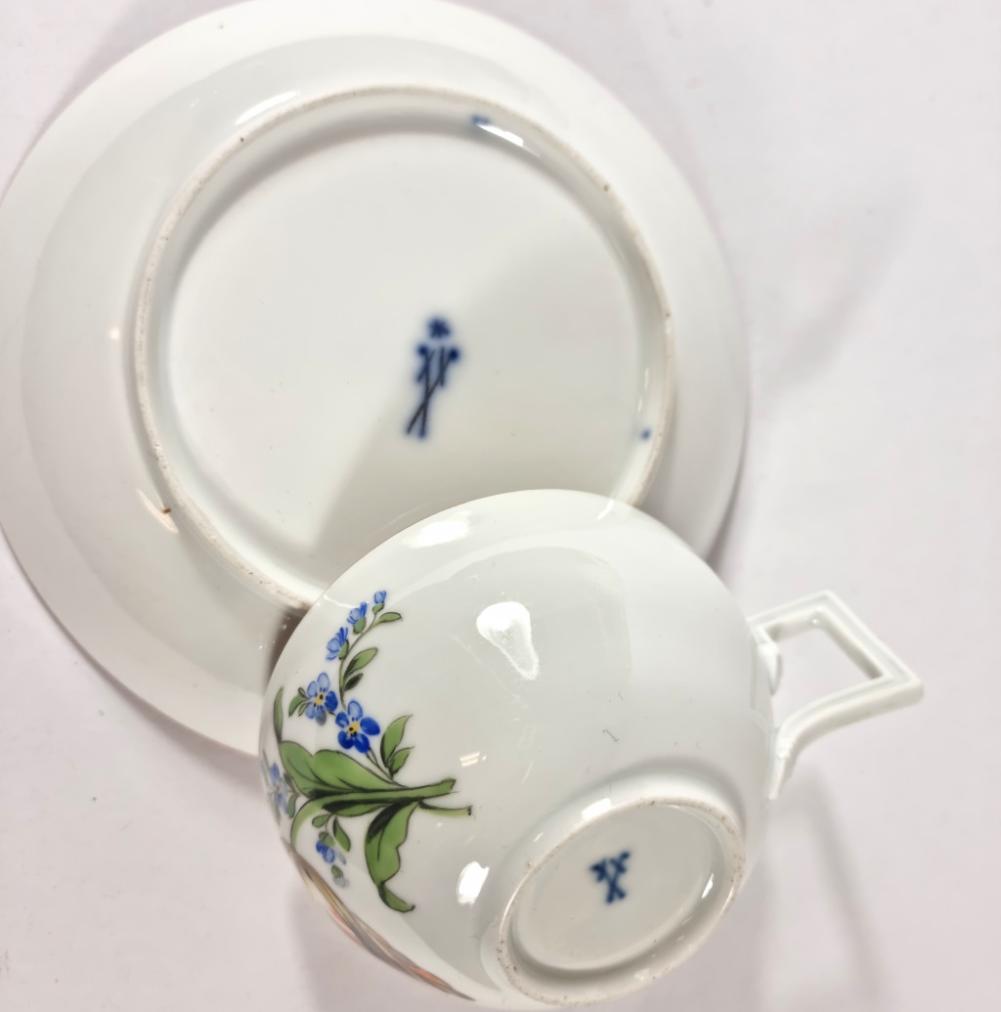 Šálek s podšálkem, Míšeň-18.století, malba květů,