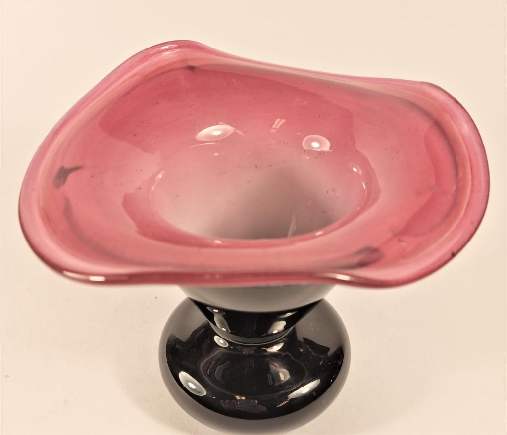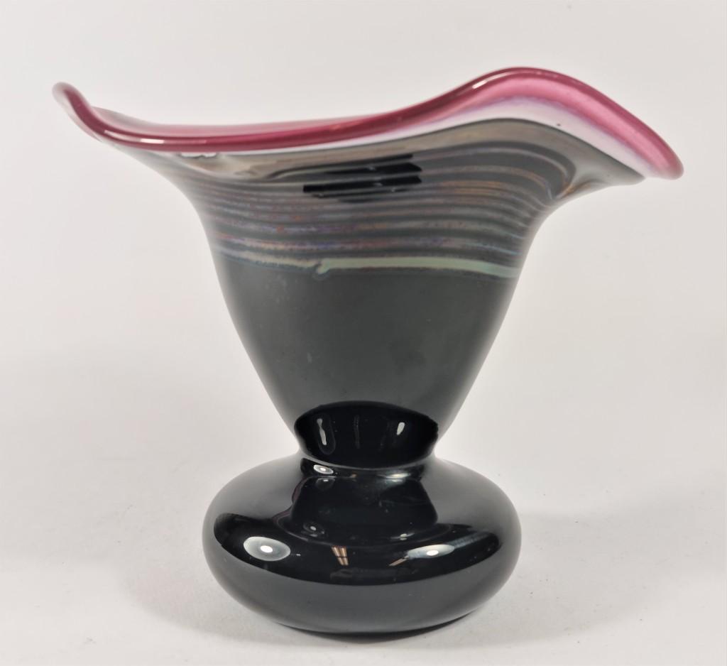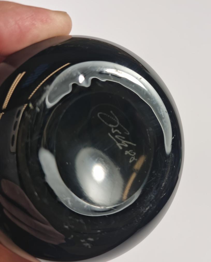 Masivní skleněná vázička, výška 13 cm, průměr v nejširším bodě 15 cm, signováno ??? 88.