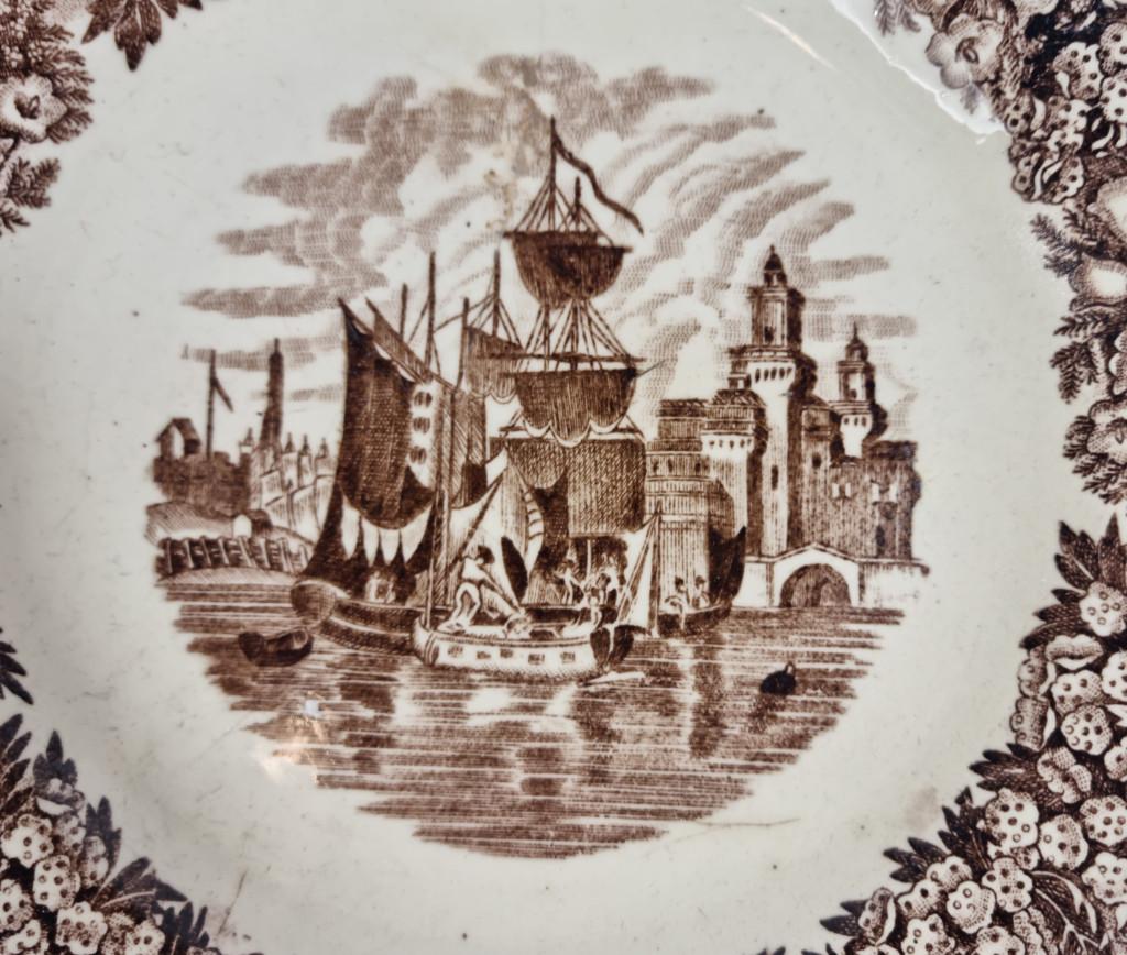 Kameninový talíř-hnědý měditisk podle Wedgwoodské kameniny,