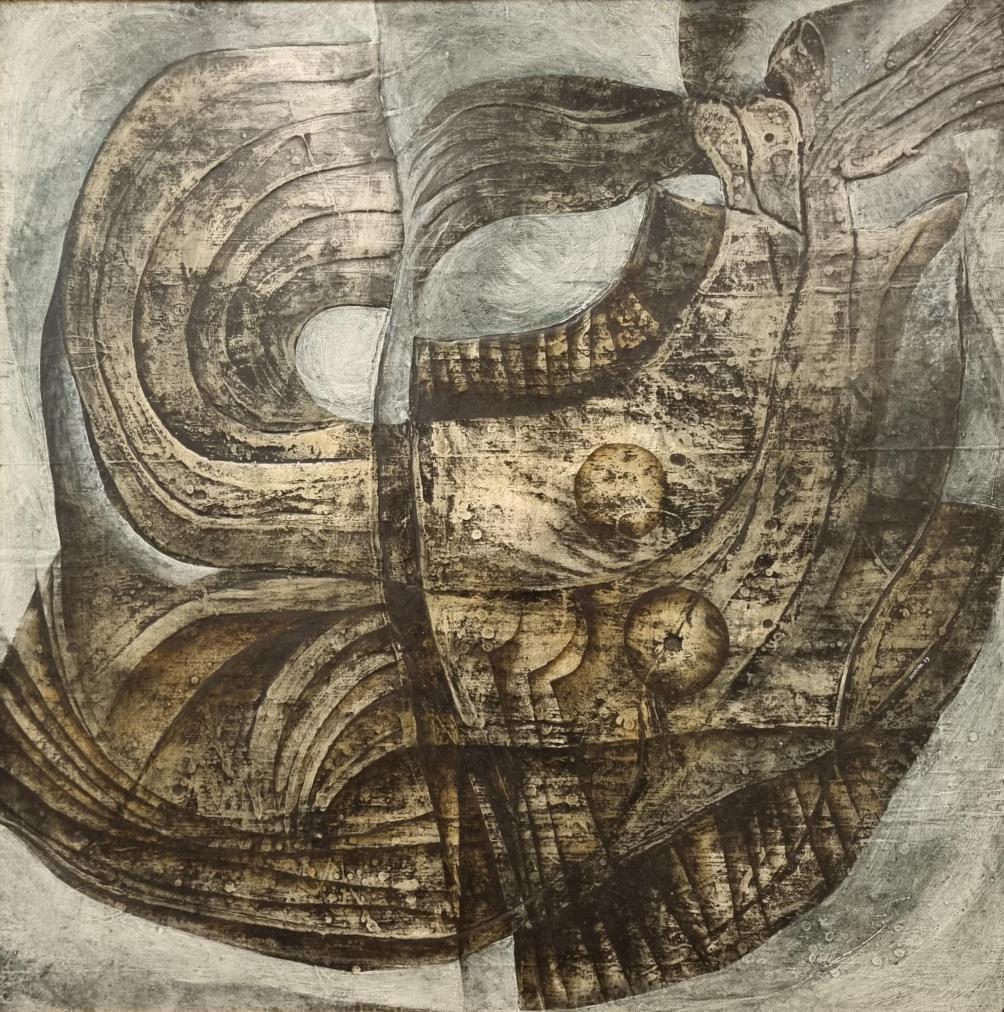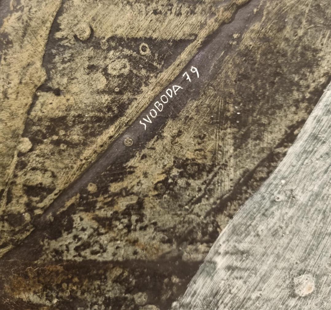 Prohlednout celou aukciMalba čtvercového formátu od českého malíře Vladimíra Svobody. Na velké ploše plátna vytváří motiv, který působí abstraktně, zároveň působí silně organicky, připomíná různé přírodní struktury, proud vody a další. Malba je, pro Svobodu typicky, silně reliéfní, autor pracuje s prostorem v ploše a vytváří unikání vjem. Dalším specifickým prvkem malby je stuktura ploch. Olej na sololitu, rámováno, rozměry s rámem 124 x 124 cm, rozměry díla 122 x 122 cm. Signováno, viz foto.