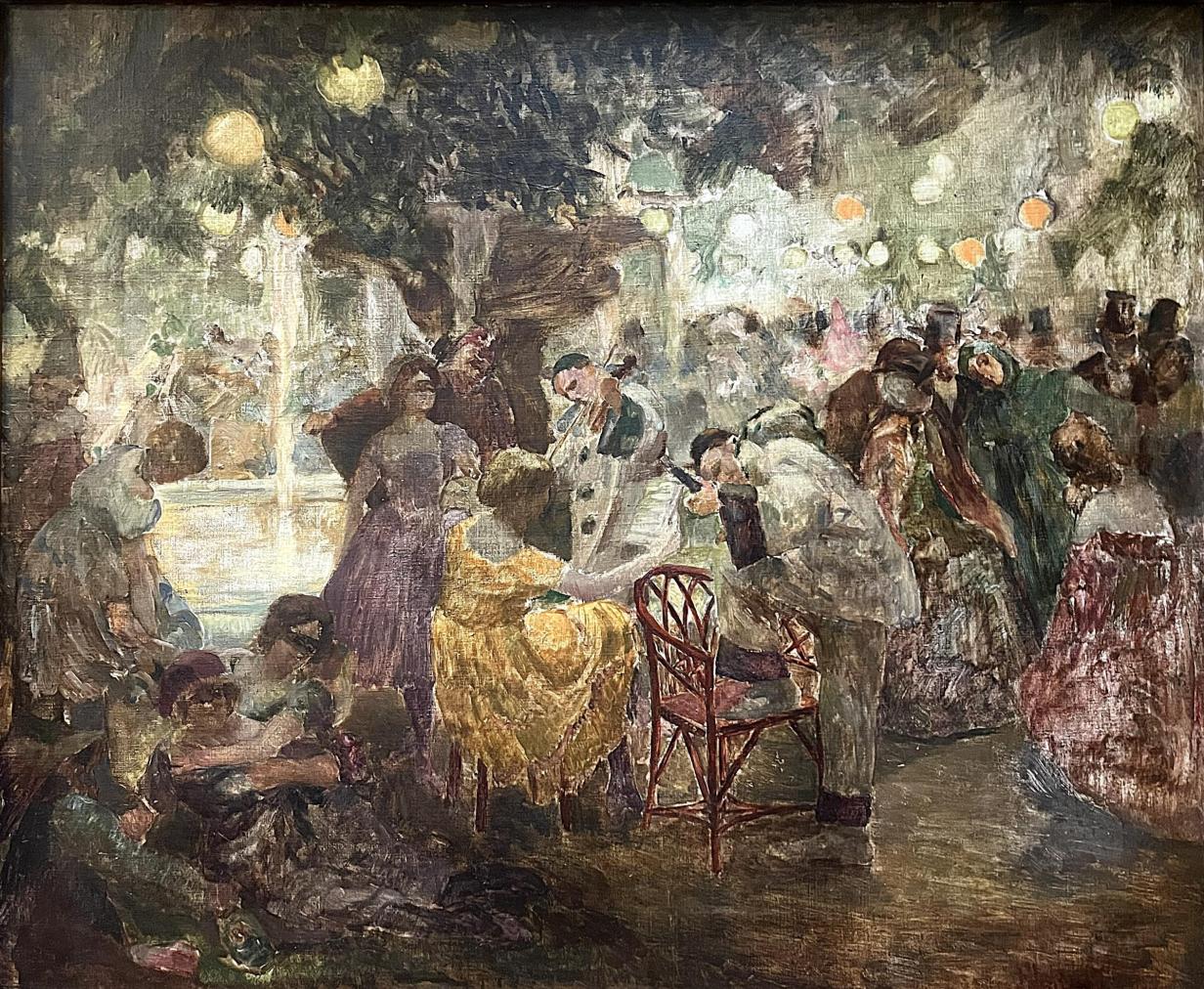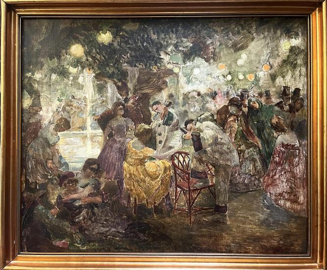 Prohlednout celou aukciÚžasné dílo s námětem bujaré venkovní slavnosti plné zábavy. Umělec zajímavým způsobem buduje prostor v obrazu, malba je tvořena místy, které nechává nepropracované, společně s plochami, v kterých se překrývají tahy štětce a vzniká hloubka. Motivy se ztrácejí a vpíjí jeden do druhého, umělec tak perfektně zachycuje energii s davem lidí a kouzelným místem. Olej na plátně, rámováno, rozměry s rámem 80 x 68 cm, rozměry díla 72 x 60 cm. Signováno vpravo dole František Jakub. Odborně vyčištěno.