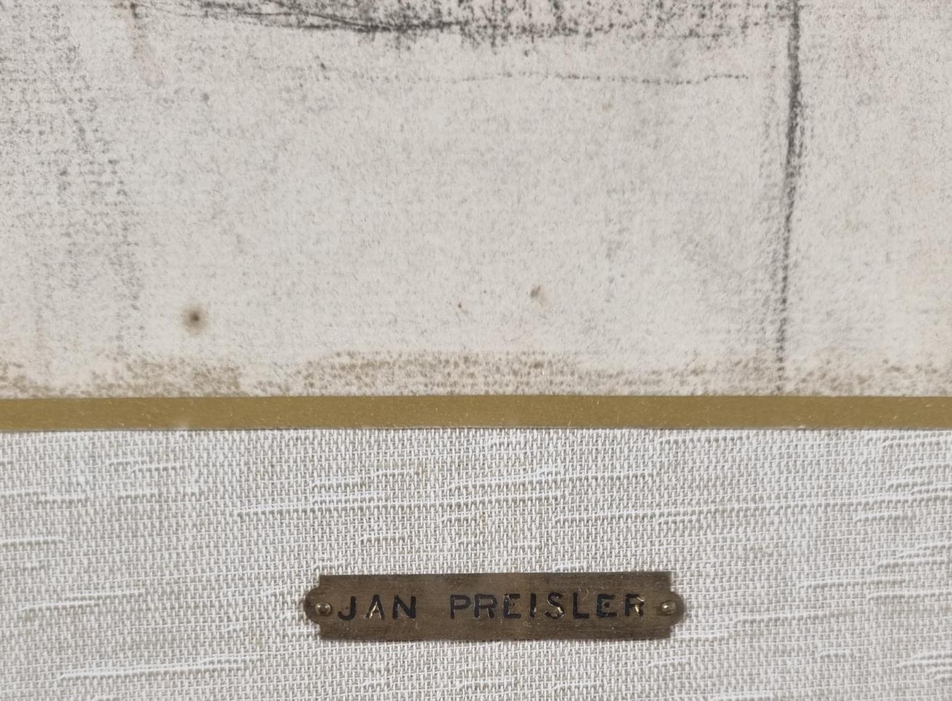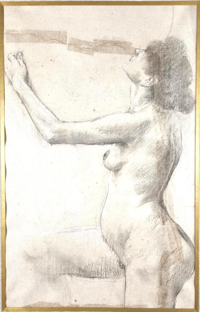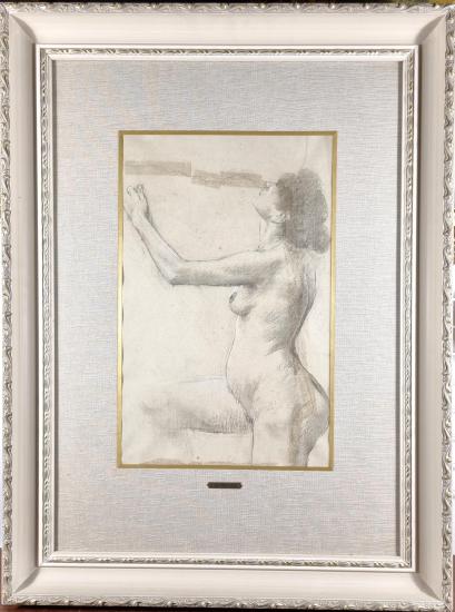 Zdařilá, půvabná studie ženské postavy od Jana Preislera. Žena se dívá do výšky a jednu nohu má pokrčenou, umělec s citem a přesností zachycuje hmotu těla, vytváří jemné stíny, které přechází v osvícené plochy. Kresba je kombinací linek, stínovaných ploch a jemných šrafur. Kresba na papíře, rámováno pod sklem, rozměry s rámem 75 x 56 cm, rozměry díla 42 x 27 cm. Autorský štítek uprostřed obrazu "Jan Preisler". Signaura nenalezena, možná se nachází pod paspartou nebo na zadní straně.