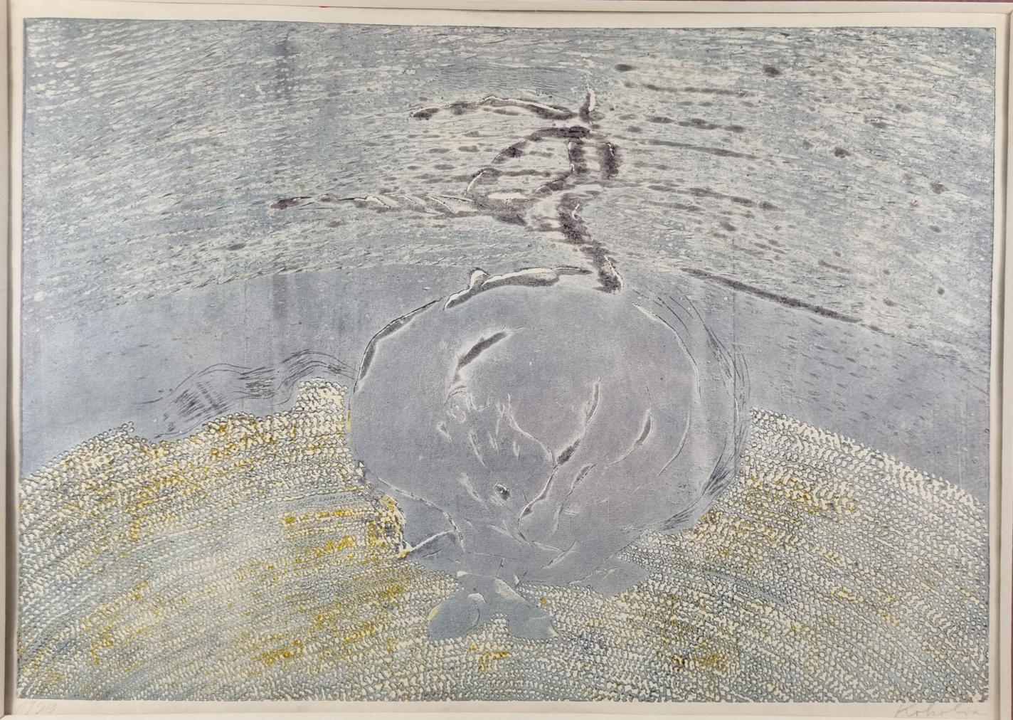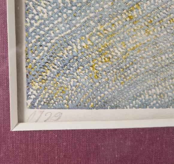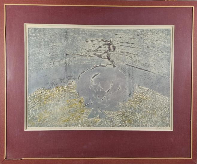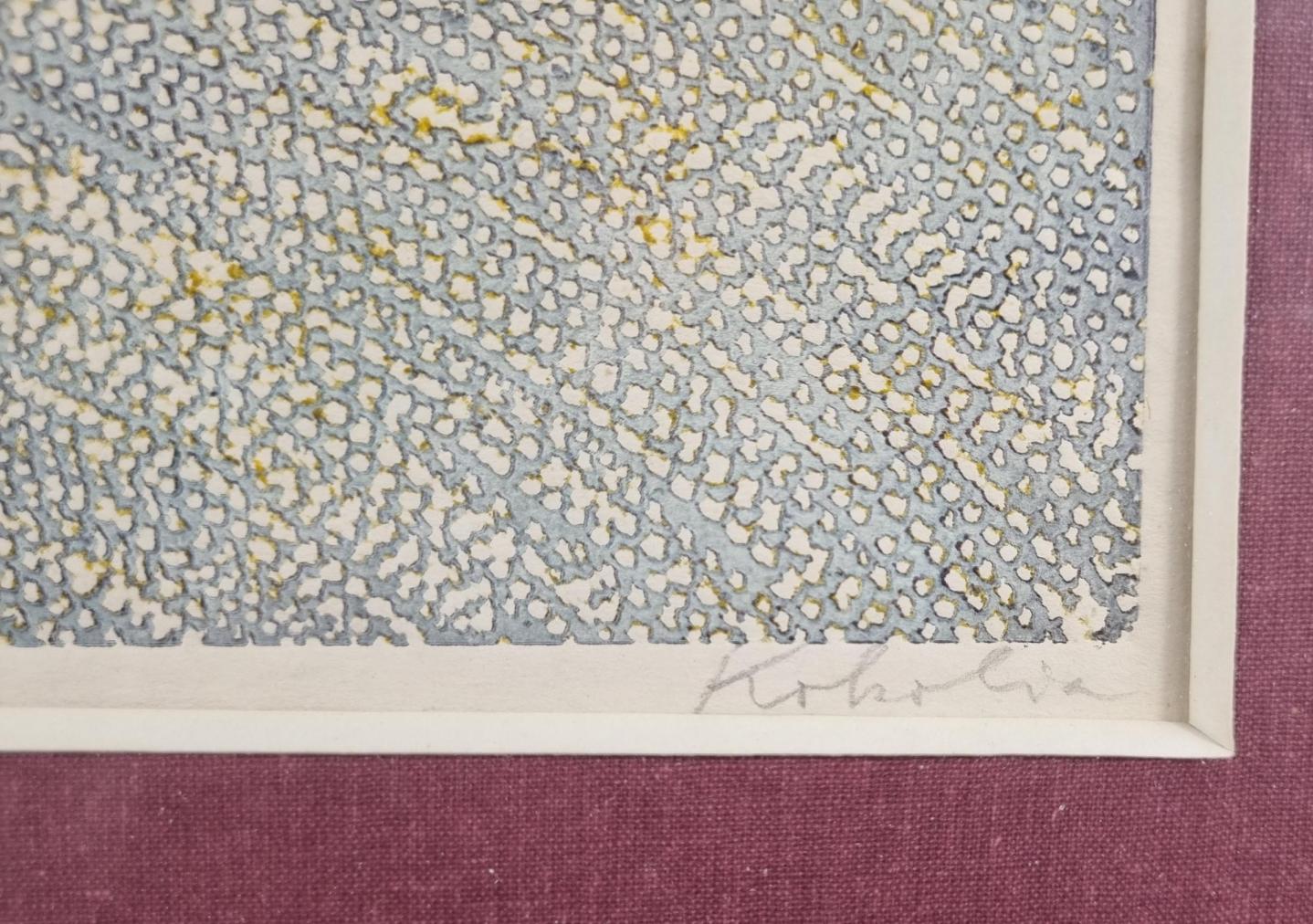 Dílo od jednoho z nejuznávanějších českých umělců Vladimíra Kokolii. Umělec vytváří v centru díla figuru, která je zastavena v dynamickém výskoku, okolí působí, jako by v pohybu pokračovalo. Ve spodní části vzniká struktura, která je místy žlutě kolorována. Grafika na papíře, rámováno pod sklem, rozměry s rámem 60 x 50 cm, rozměry díla 43 x 30 cm. Signováno vpravo dole "Kokolia", výtisk 1/29.