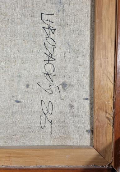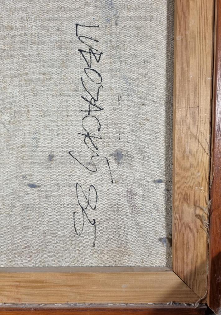 Obraz od akademického malíře Stanislava Lubojackého znázorňující dvě modernisticky pojaté postavy stojící naproti sobě. Kubisticko futuristické podání postav zapříčiňuje vzájemné proplítání se těl postav. Barvy jsou spíše temného charakteru, ale vyskytuje se i červená a křiklavě oranžová. Obraz je v jednoduchém dřevěném rámu a zezadu signatura a datace. Výška obrazu je 89,5 cm a šířka je 73 cm.