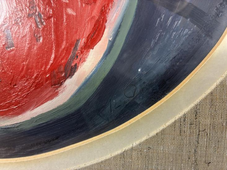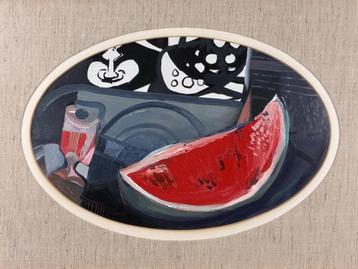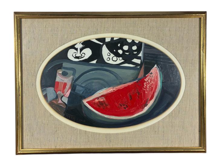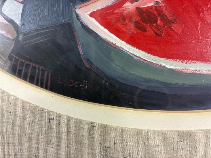 Obraz od akademického malíře Leonida Ochrymčuka zachycující meloun. Malba se nese v duchu kubistických tendencí a vyskytují se na ní momenty, kdy je jeden předmět zachycen z více úhlů. Malba má oválný tvar a je signovaná hned dvakrát - jednou vlevo dole L. Och a vpravo - L. O. Obraz je zarámovaný ve zlaceném rámu pod sklem. Rozměry s rámem 59 x 45 cm a průměry oválu jsou 43 x 28 cm.