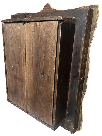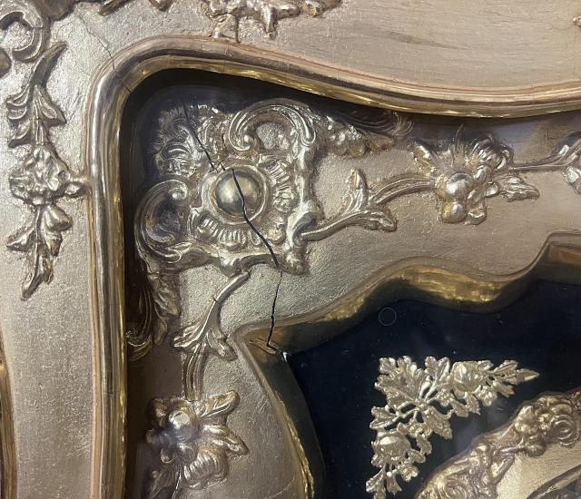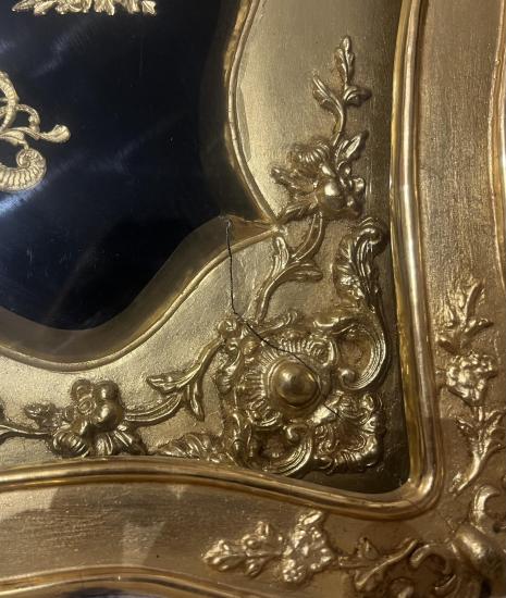 Unikátní, rámové zlacené hodiny ve stylu Biedermeier, se smaltovaným ciferníkem, Rakousko- Uhersko. Rozměry vnějšího zlatého rámu jsou 41 x 51 cm, vnitřní 23 x 31 cm. Ciferník má průměr 11 cm. Hloubka hodin je 13 cm. Ciferník je opravovaný, vnitřní rám má praskliny viz foto. Ochranné sklo je bez poškození. Funkčnost hodin nebyla zkoušena -prodáváme jako nefunkční, bez klíče. Neznačeno.