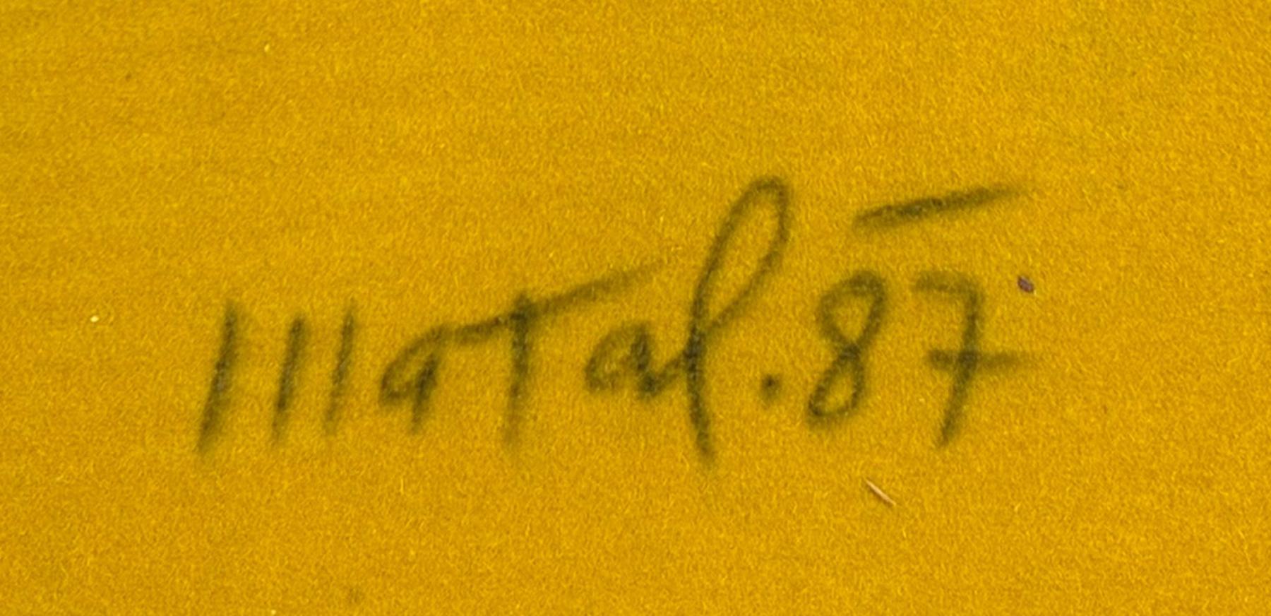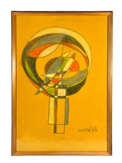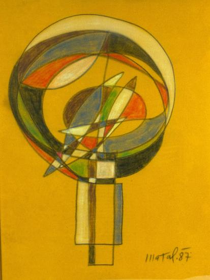 Dílo od Bohumíra Matala. Na žlutém pozadí vytváří kompozici složenou z geometrických tvarů, které vyplňuje barevnými plochami. Nechává tak interpretaci na divákovi, který v kompozici může hledat skryté významy. Linky jsou příjemně neostré, charakteristicky k použité technice. Pastel na papíře, rámováno pod sklem, rozměry s rámem 69 x 48 cm, rozměry díla 43 x 64 cm. Signováno v pravém dolním rohu "Matal 87".