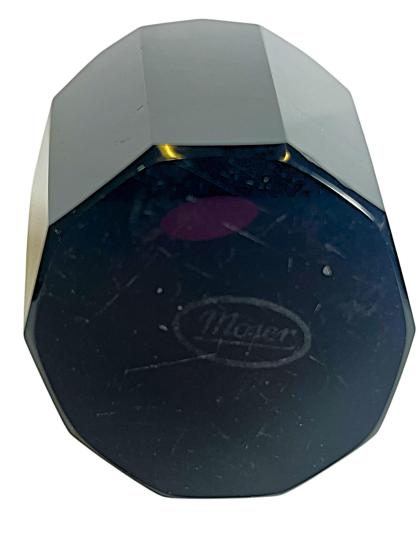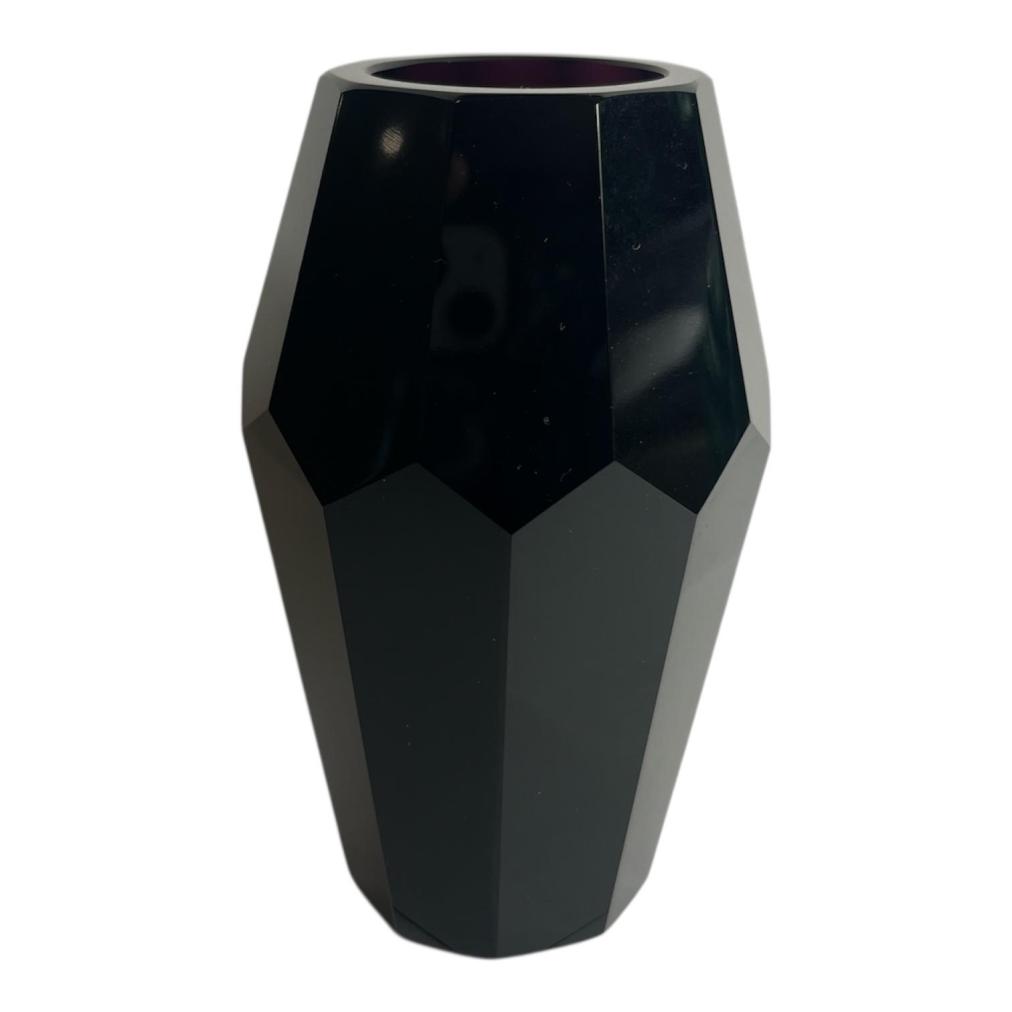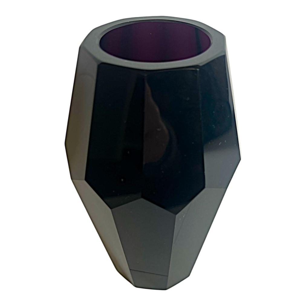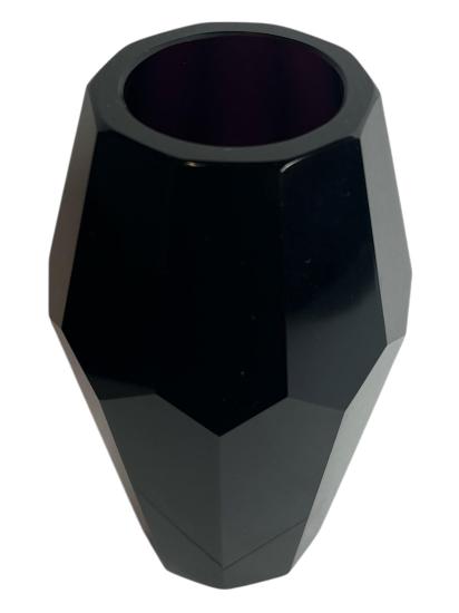 Drobná váza od značky Moser v typickém tmavě fialovém, ametystovém provedení. Čistý design střídajících se dlouhých broušeých ploch vytváří krásné odlesky na povrchu. Výška 13 cm, průměr hrdla 5 cm, podstava 5 cm. Značeno vespod - Moser. Vázička má na třech místech velmi mělké škrábance, podstava větší počet rýh, jinak perfektní stav.