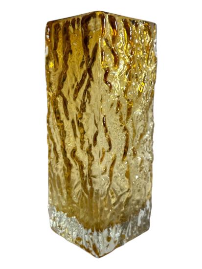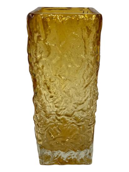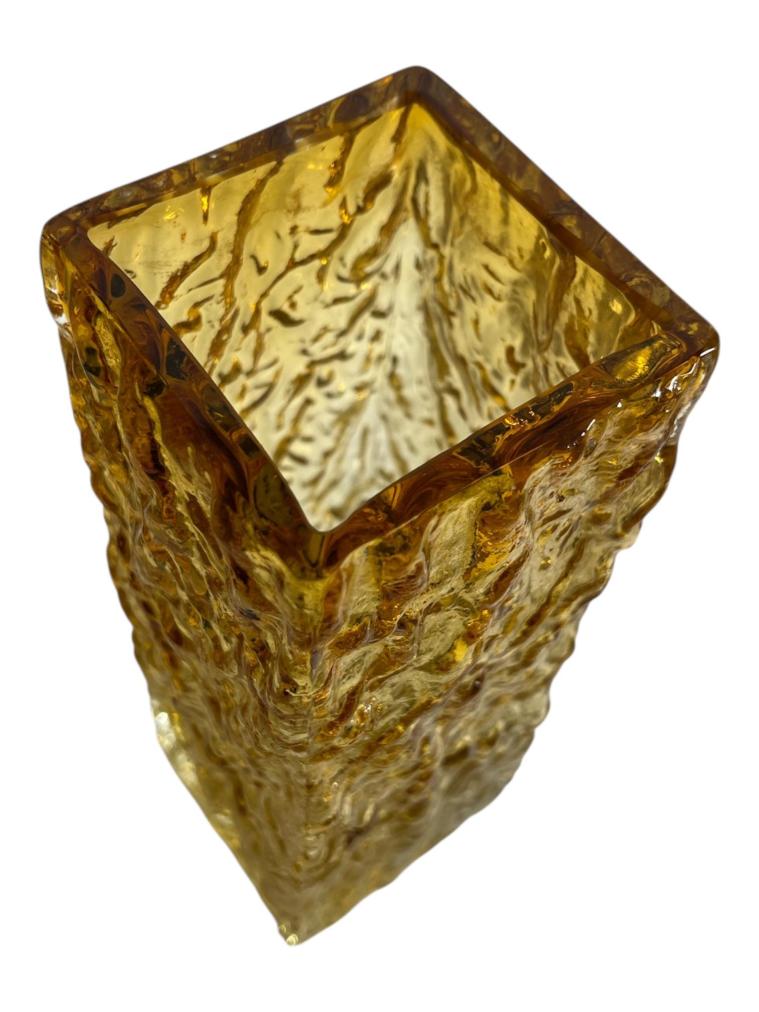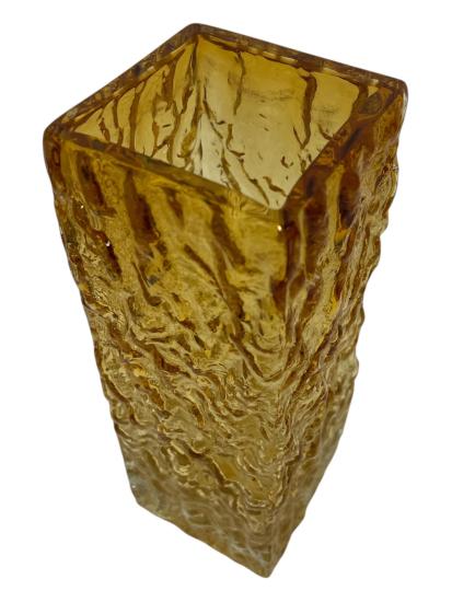 Krásná váza od autora Vladislava Urbana ve světle jantarovém provedení. Sklárna Union Rosice. Váza má specifickou strukturu, která může připomínat oheň, kůru stromu a nebo rozvlněnou hladinu vody. Výška 21,5 cm, podstava 8 x 8 cm. Neznačeno. Perfektní stav.