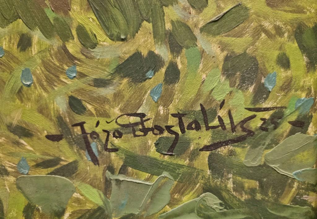 Obraz, olej na plátně o rozměrech malby 100 x 80 cm, rám 113 x 92 cm, signováno Jóža Dostalík 25.