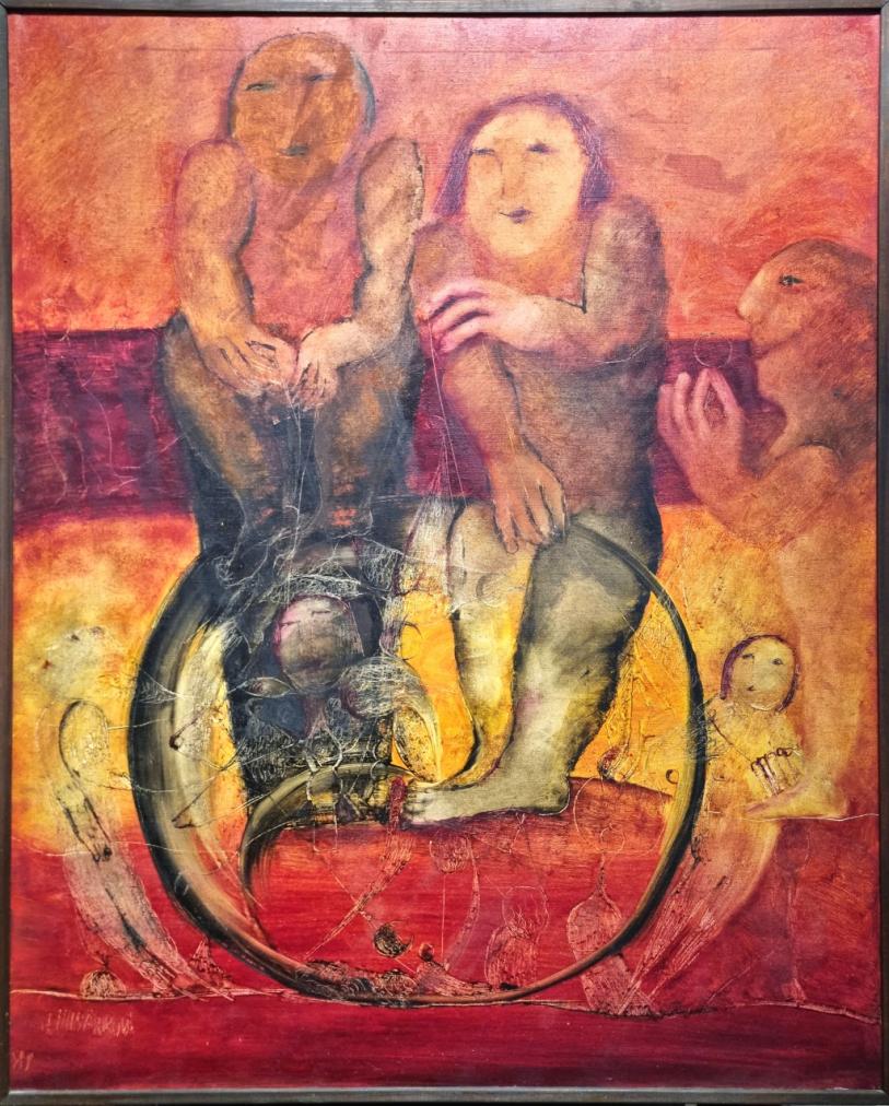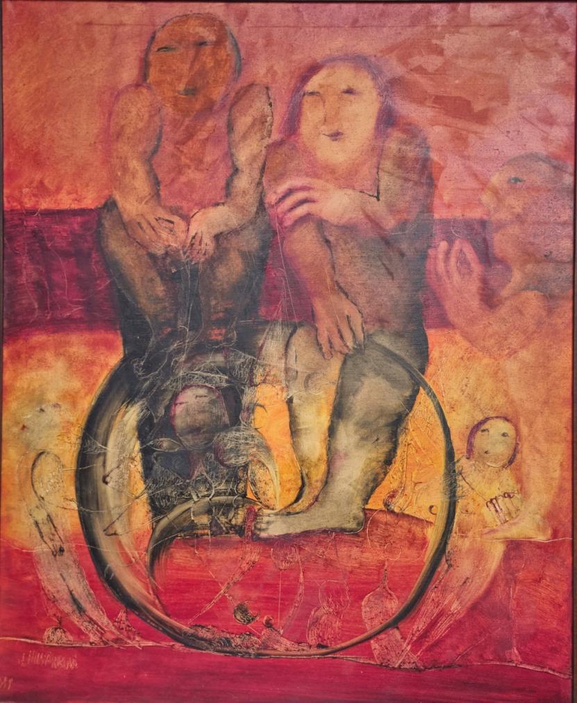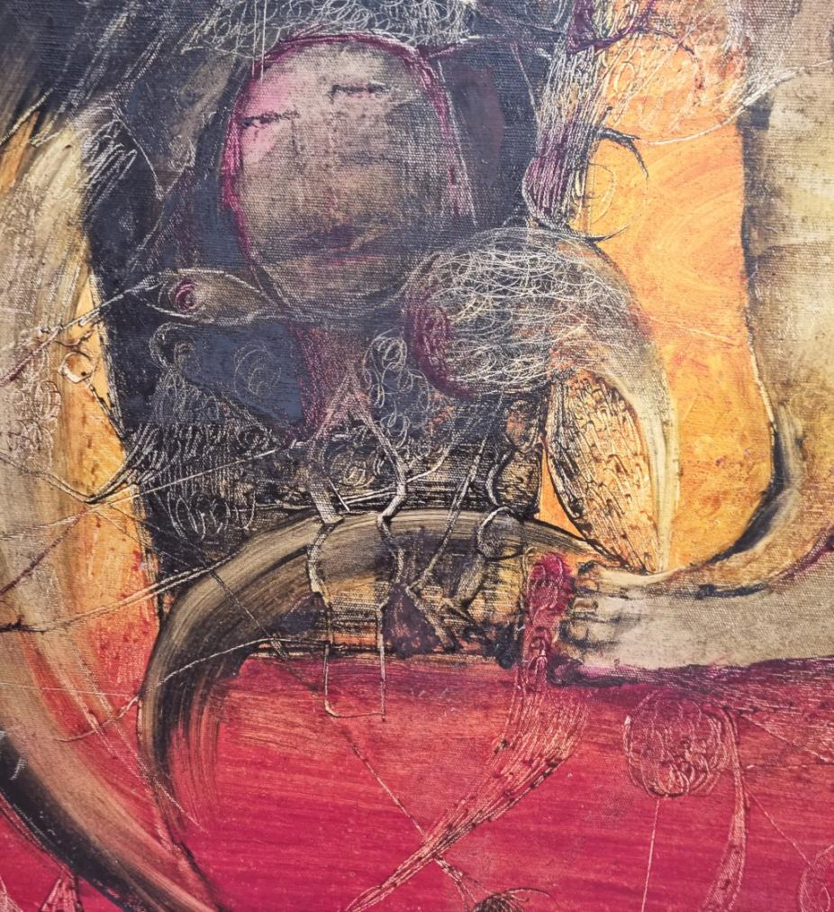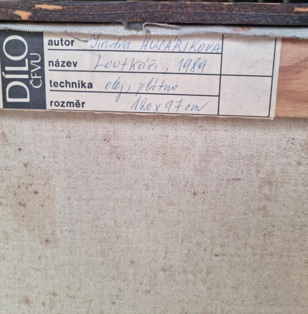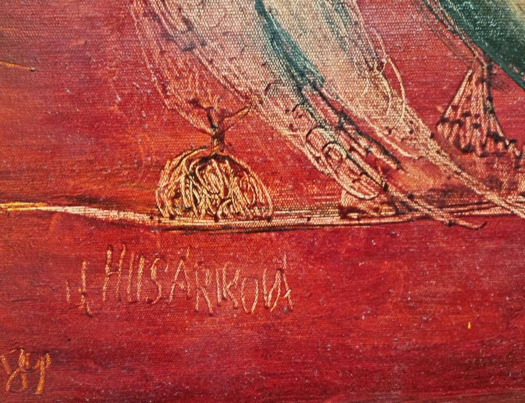 Obraz olej na plátně, rozměr včetně rámu 120 x 97 cm, signováno Husárikova 1989, na zadní straně autorský štítek.