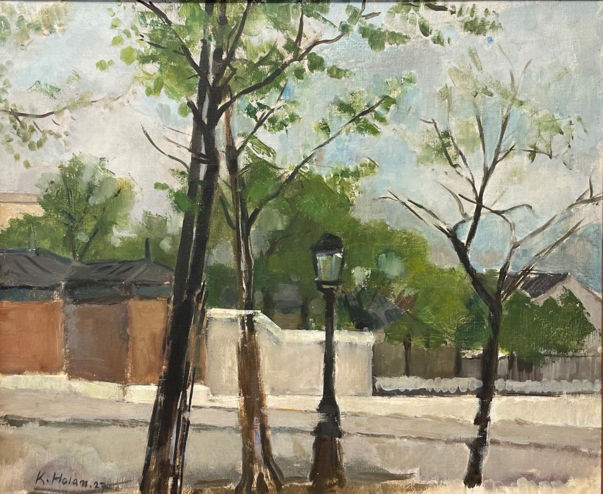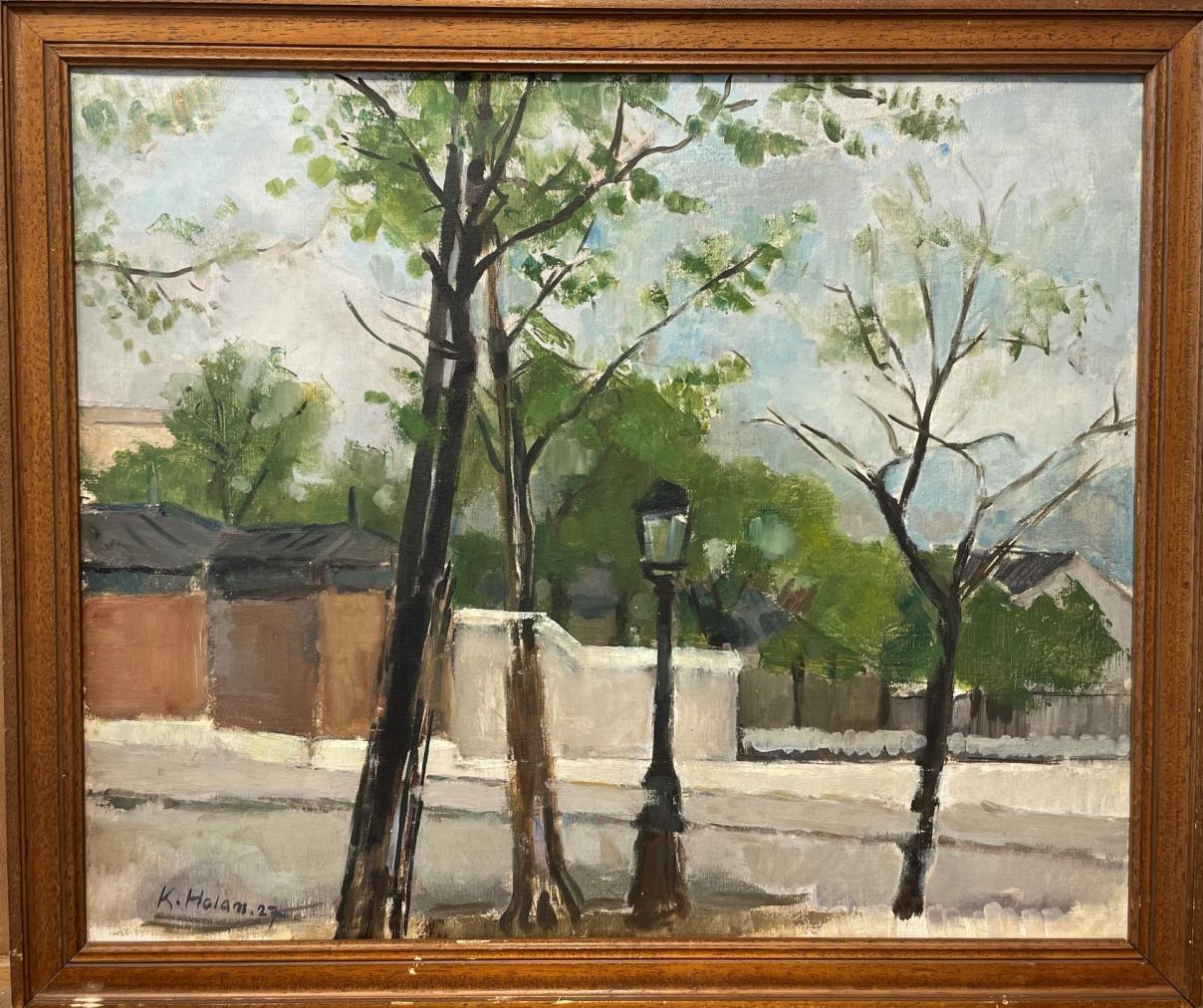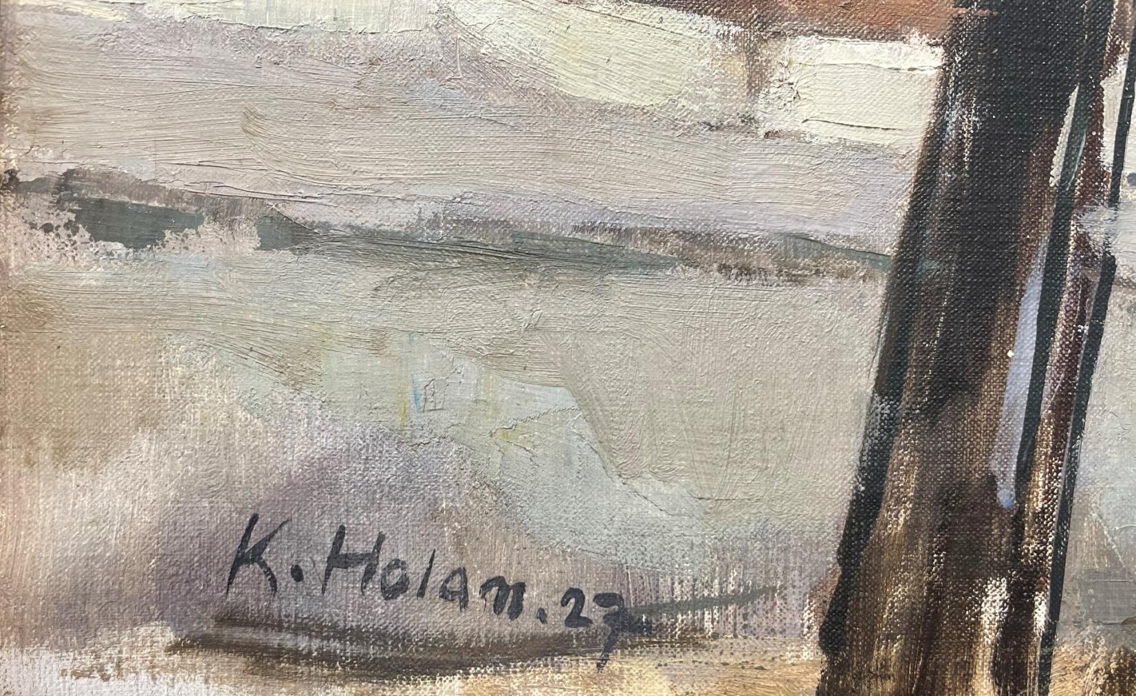 Obraz o rozměrech malby 45 x 37 cm, včetně rámu 51 x 43 cm, olej na plátně, signováno v levém dolním rohu " K.Holan 27".