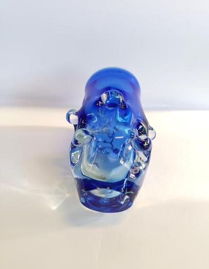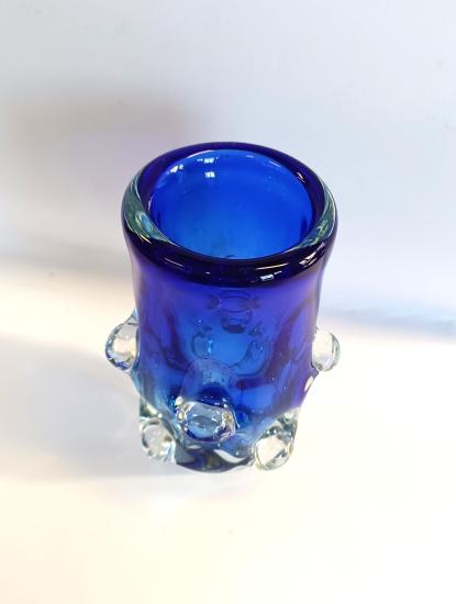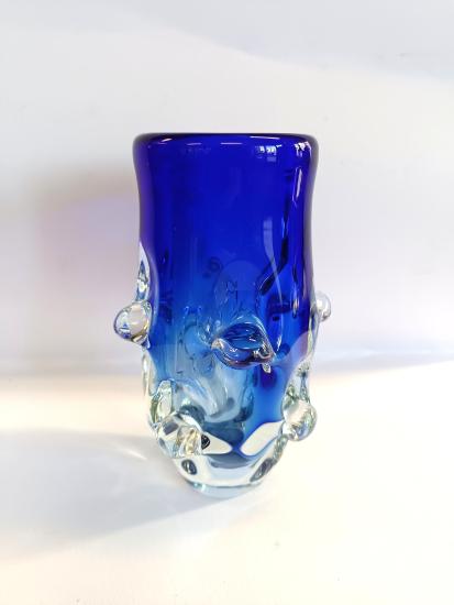 Váza z hutního skla v modro-bílém provedení, jejímž autorem je Ladislav Paleček, sklárna Škrdlovice.
