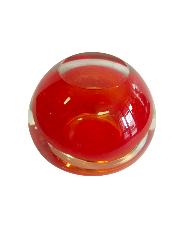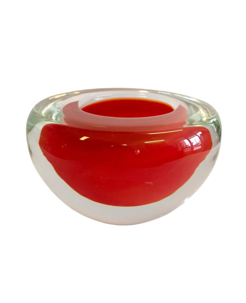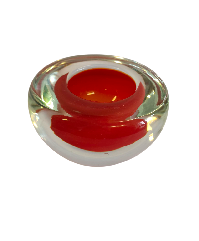 Krásná mísa z bílého a červeného hutního skla podle návrhu Jaroslava Svobody. Miska je vysoká 9,5cm, široká 15cm s podstavcem o průměru 8cm. Mísa je bez poškození a oťuků, jen podstavec je mírně poškrábaný.