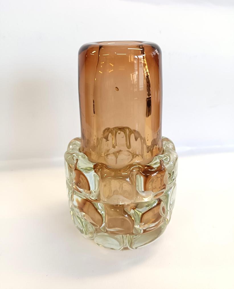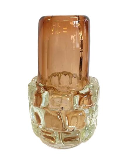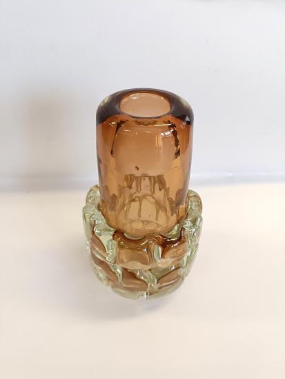 Krásná autorkská váza z hutního skla. Podle návrhu Františka Víznera - Ananas, Sklárna Škrdlovice. Výška 17,5cm, šířka v nejširším bodě 10cm, šířka podstavy je 6,5cm. Váza je kromě poškrábané podstavy v perfektním stavu.
