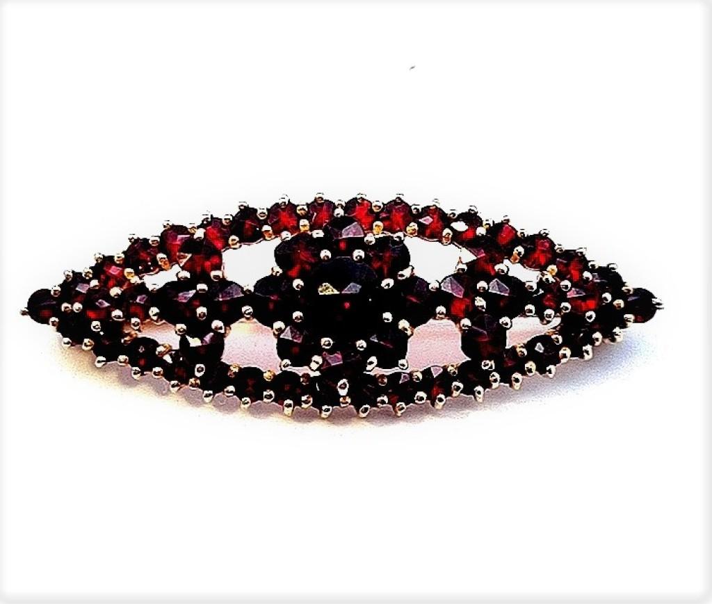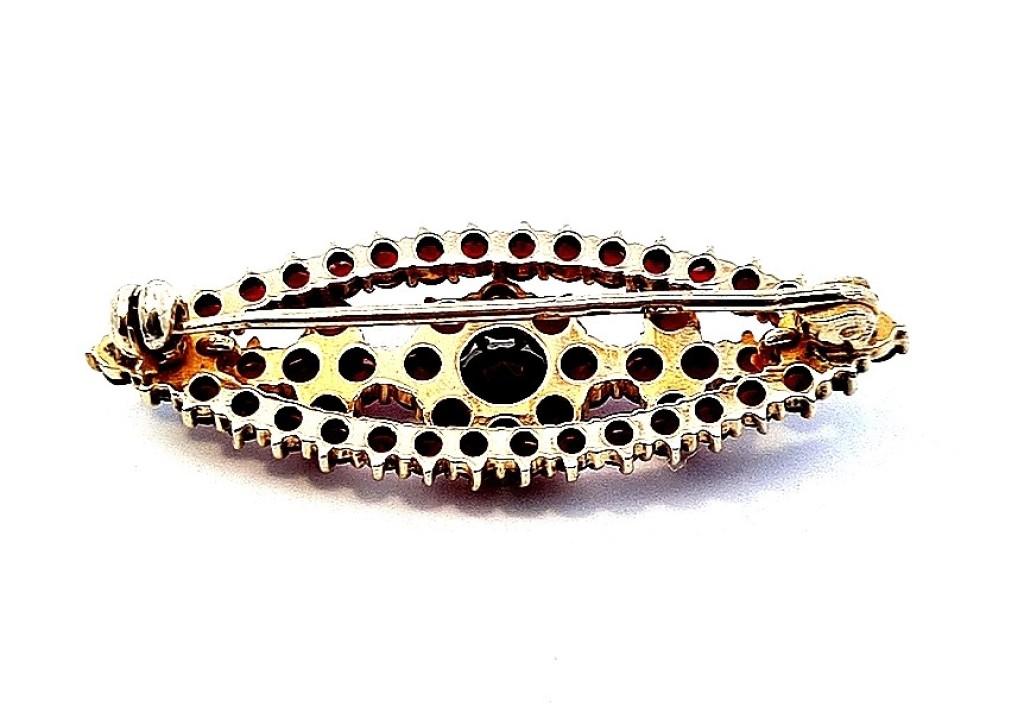 Stříbrná brož o ryzosti 900/1000, punc kamzík, váha 5,21 g, výška 14 mm, délka 42 mm.