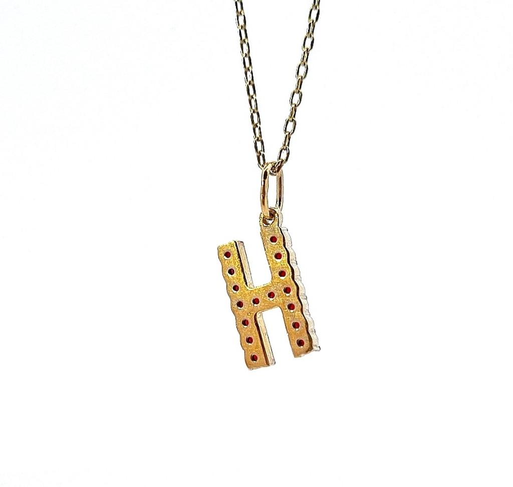 Pozlacený stříbrný přívěsek s českými granáty - písmeno H