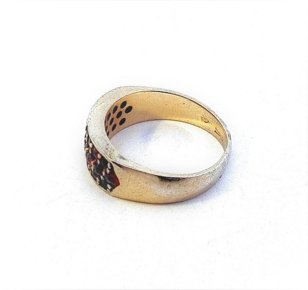Pozlacený stříbrný prsten s českými granáty, vel. 53
