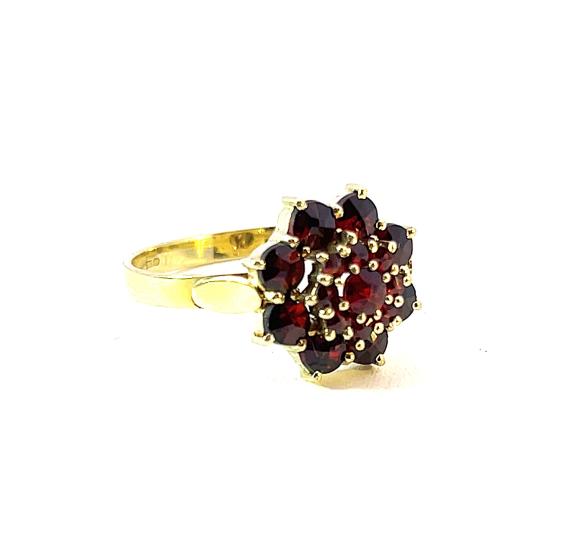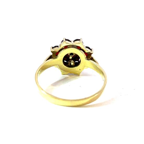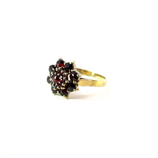 Zlatý prsten o ryzosti 585/1000, punc labuť. Velikost 57, váha 3,80 g, průměr ozdoby 13,5 mm.