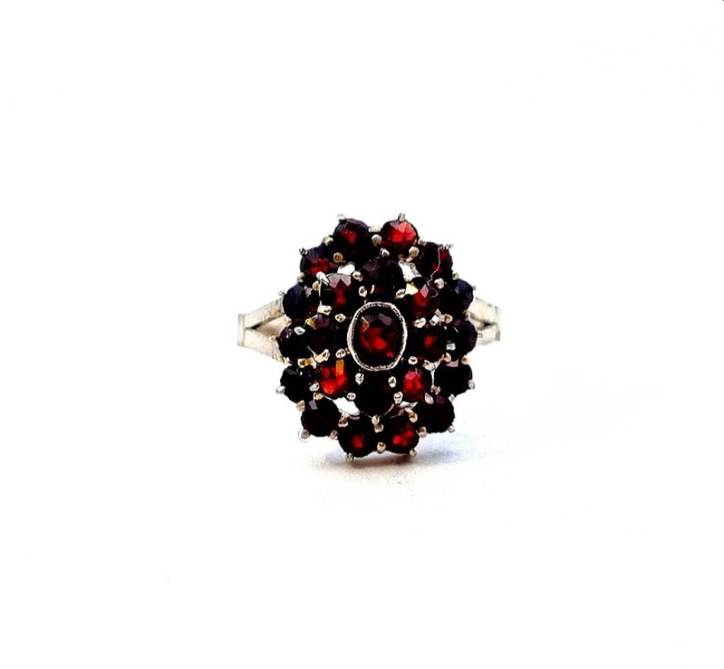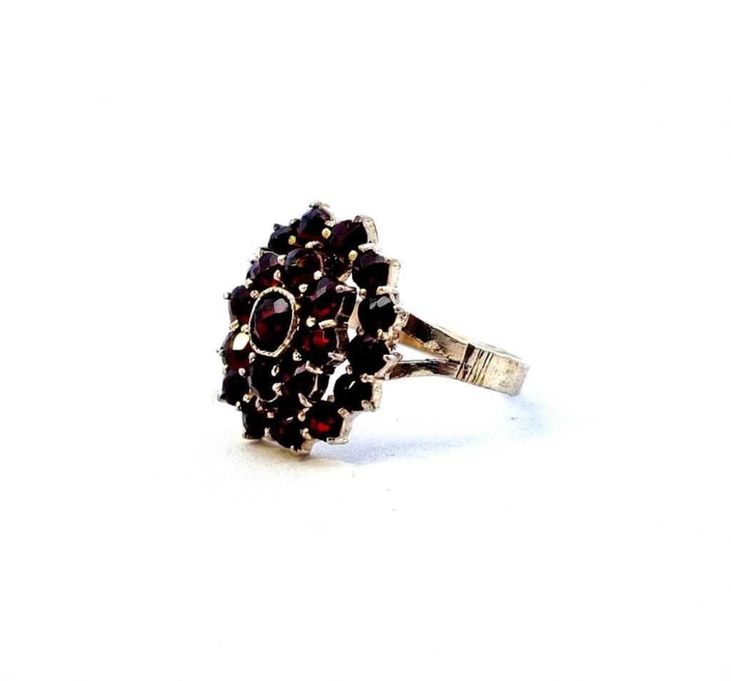 Starožitný stříbrný prsten s českými granáty, vel. 53