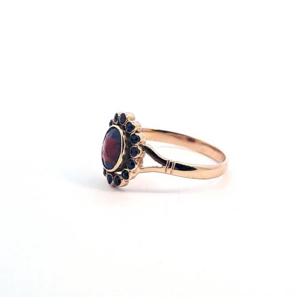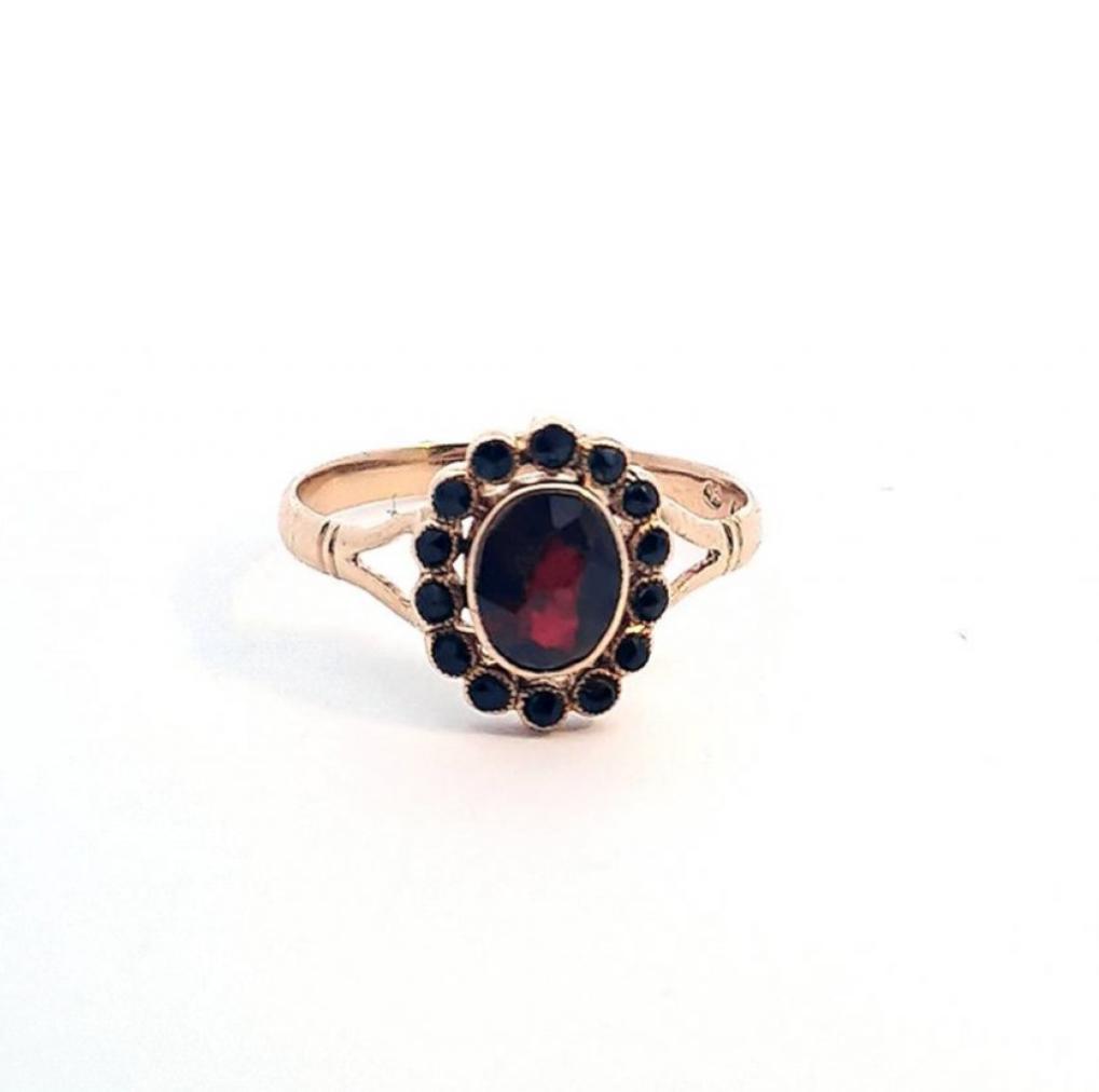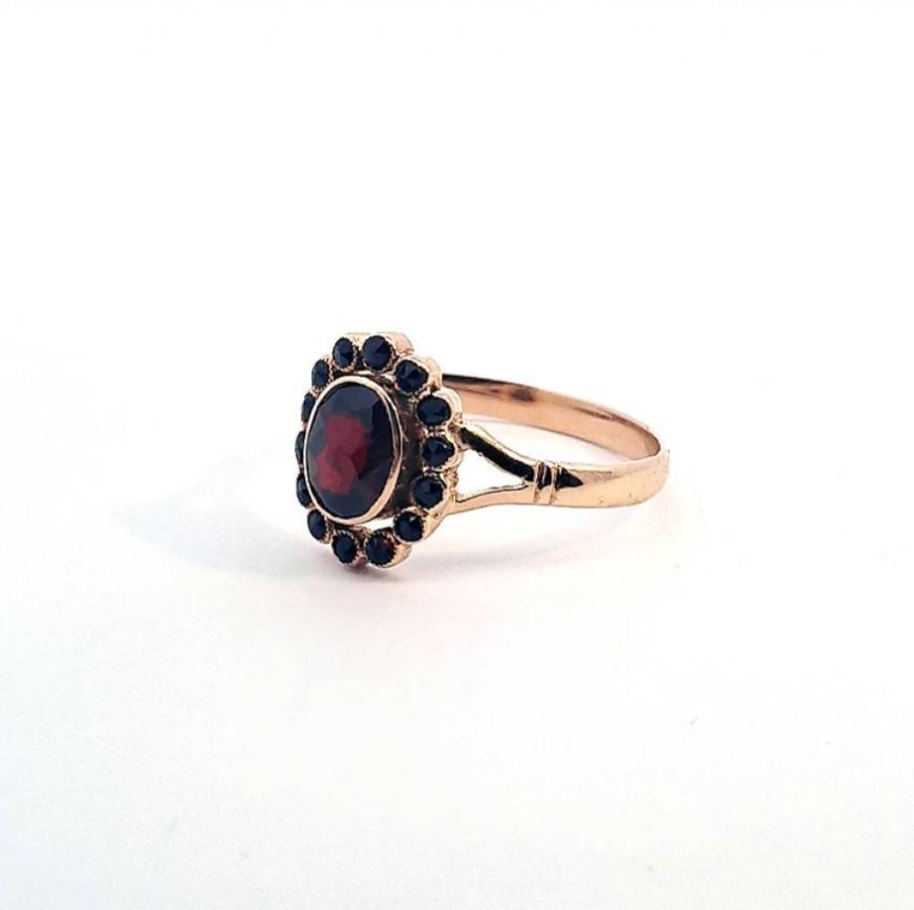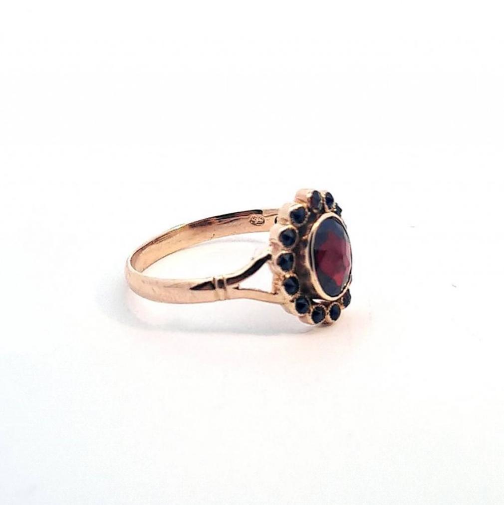 Starožitný zlatý prsten s českými granáty, vel. 54