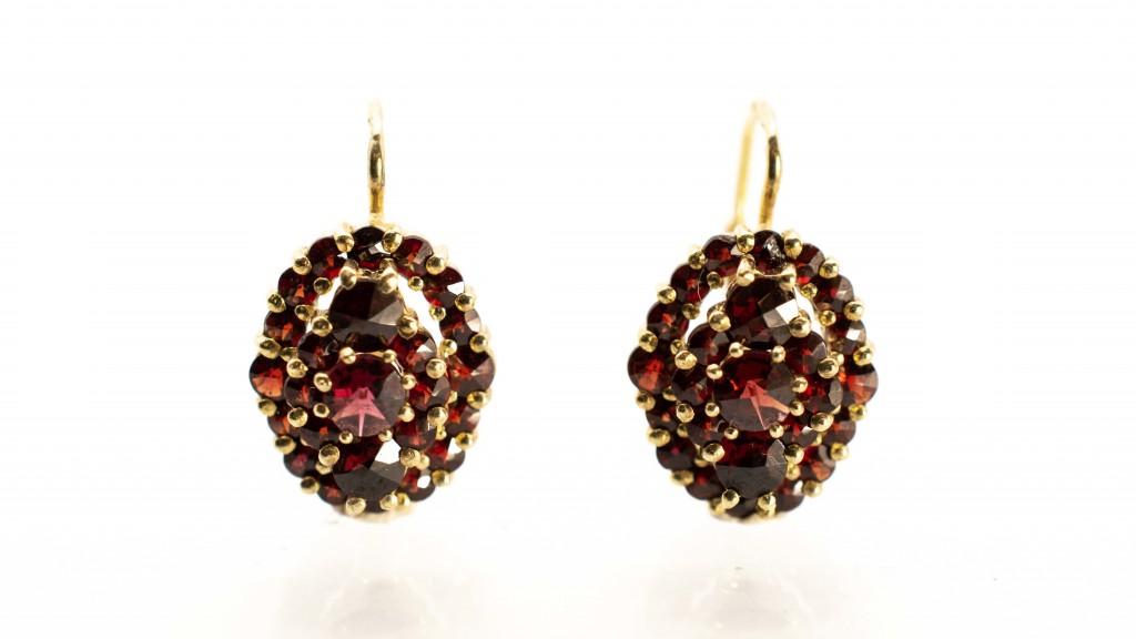 Stříbrné náušnice s českými granáty, visací, 3,82g