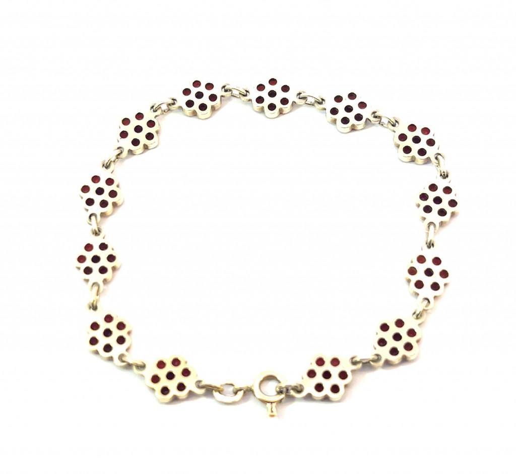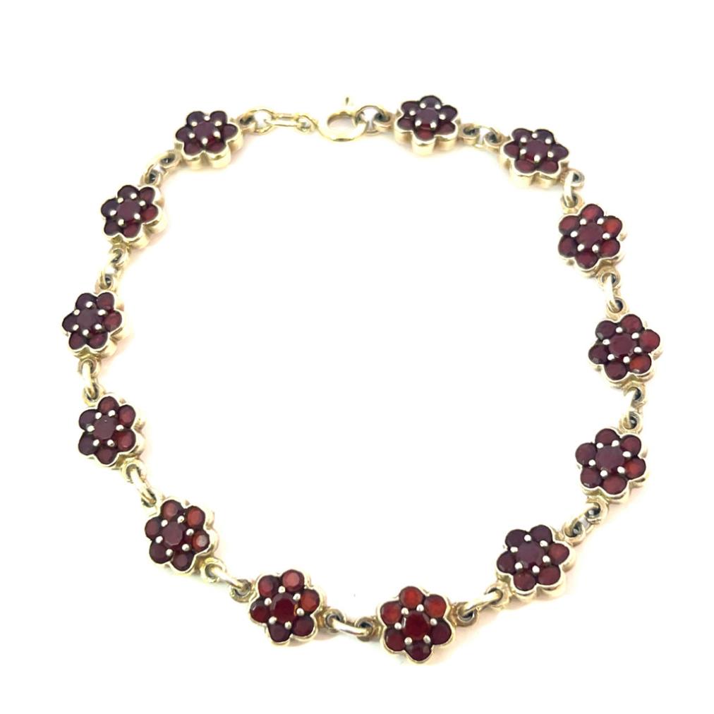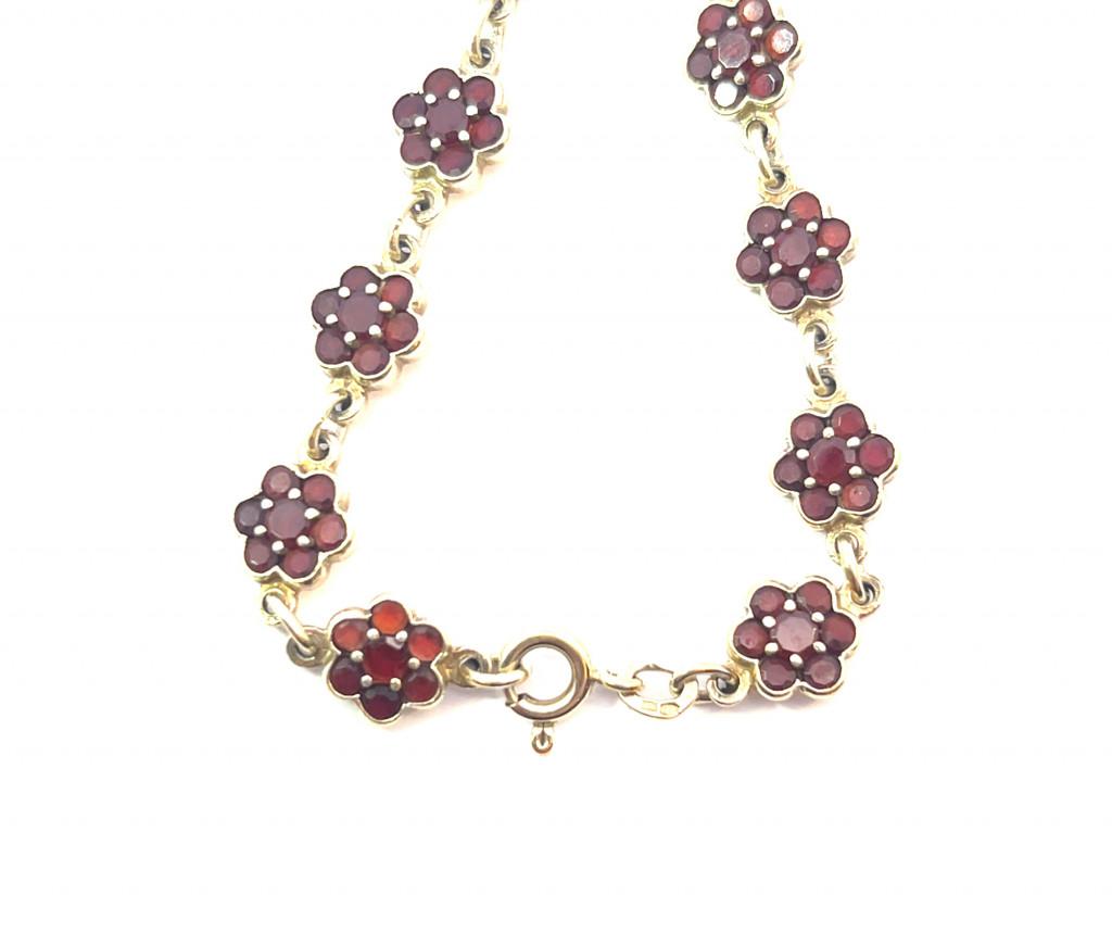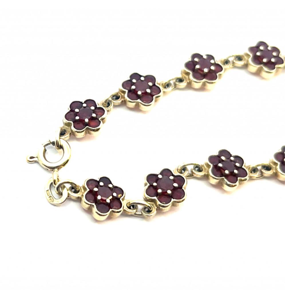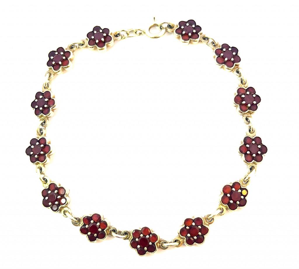 Stříbrný náramek s kytičkami z českých granátů, 8,31 g