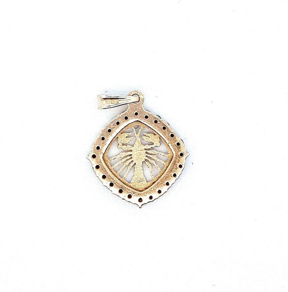 Stříbrný přívěsek o ryzosti 900/1000, punc zajíc, váha 2,50 g, výška celkem i s očkem 27 mm, šírka v nejširším bodě 18 mm.