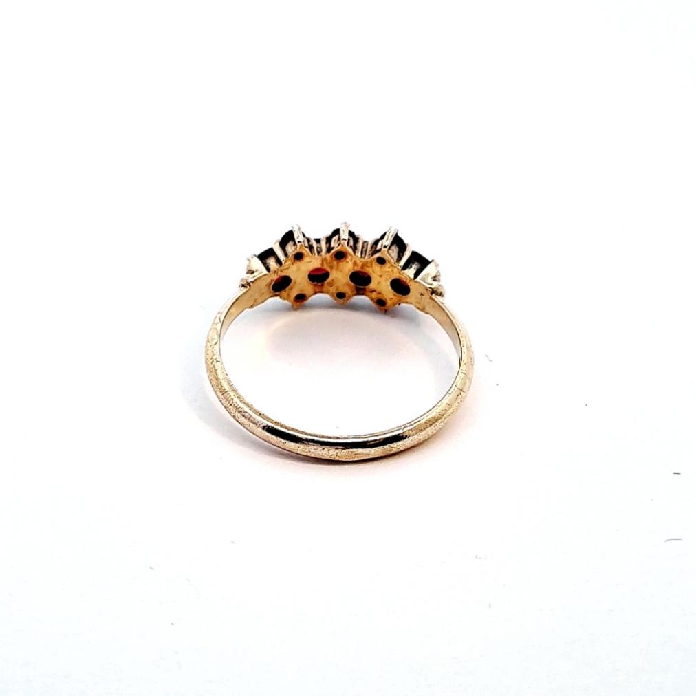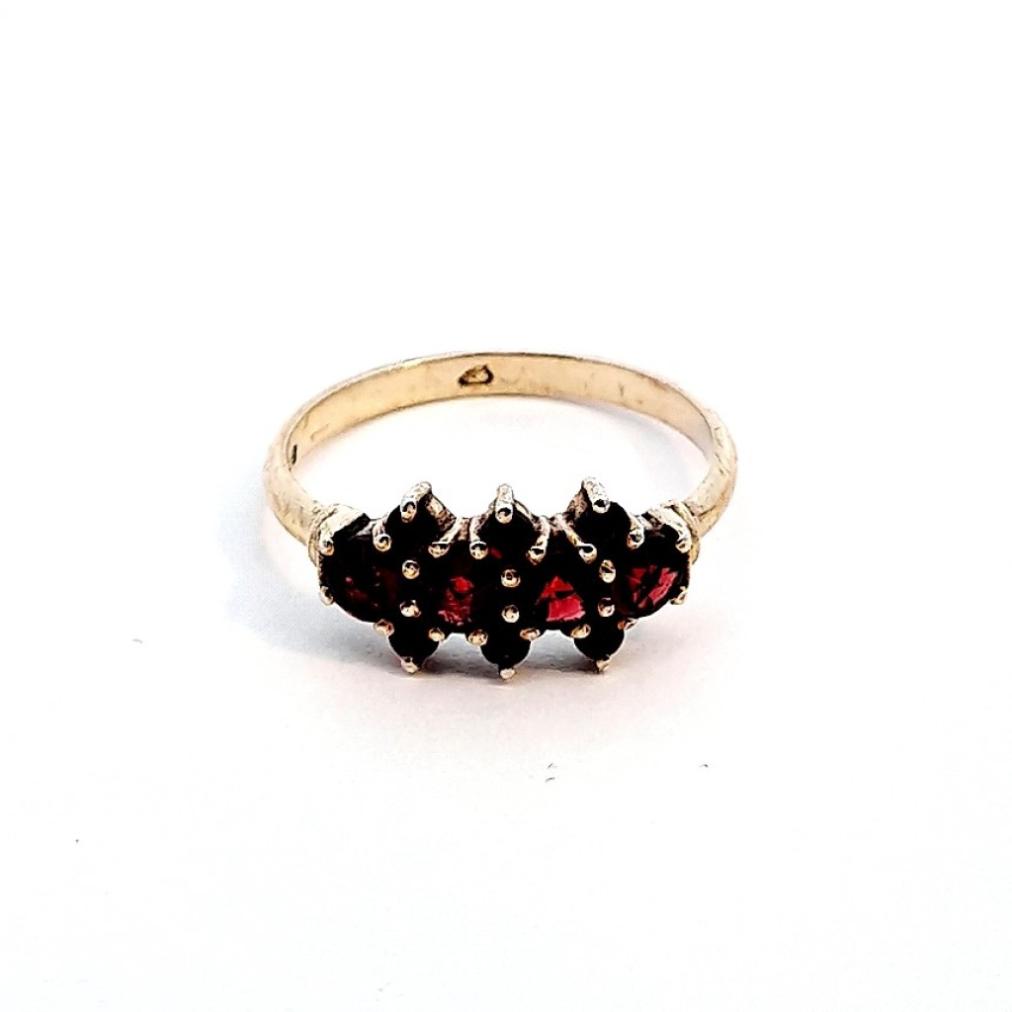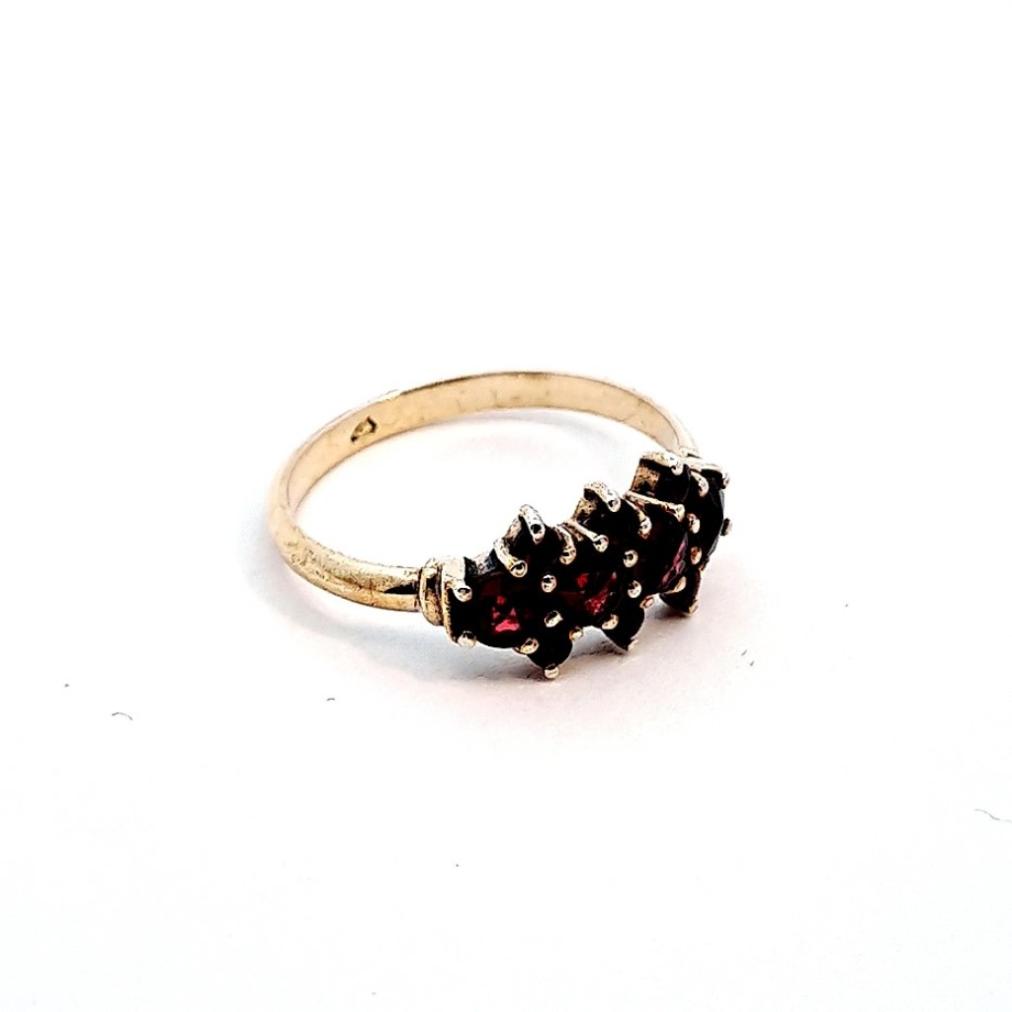 Stříbrný prsten, vel. 50, ryzost 900/1000, punc zajíc. Váha 1,67 g, šířka v nejširším bodě 7,5 mm.