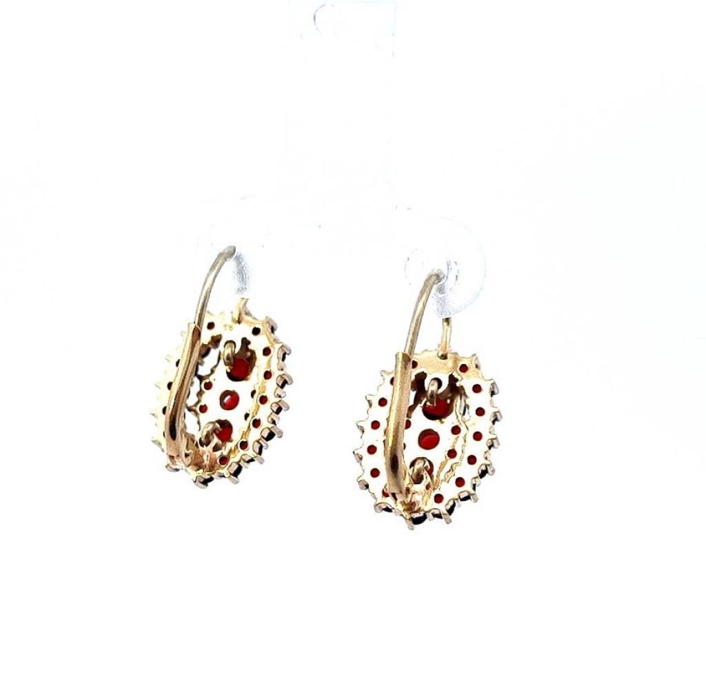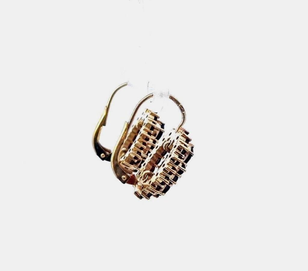 Zlaté náušnice o ryzosti 585/1000, punc čejka. Váha 5,74 g, výška 20 mm, v nejširším bodě 11,5 mm.