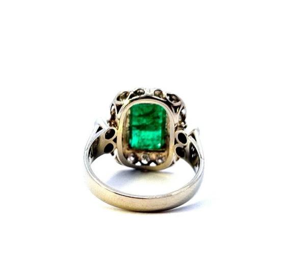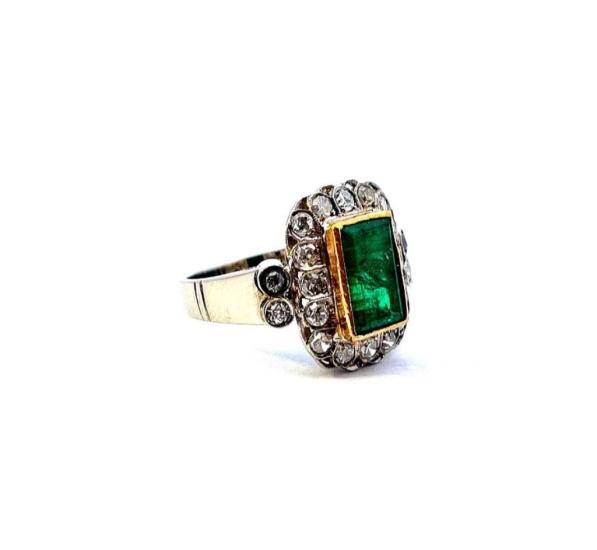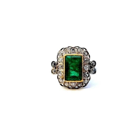 Art deco prsten s diamanty a smaragdem, vel. 56