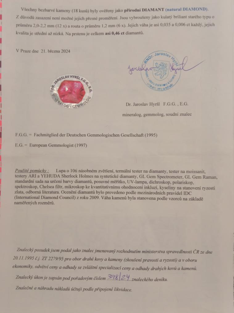 Pravost a kvalitu kamenů dokládáme odborným posudkem.