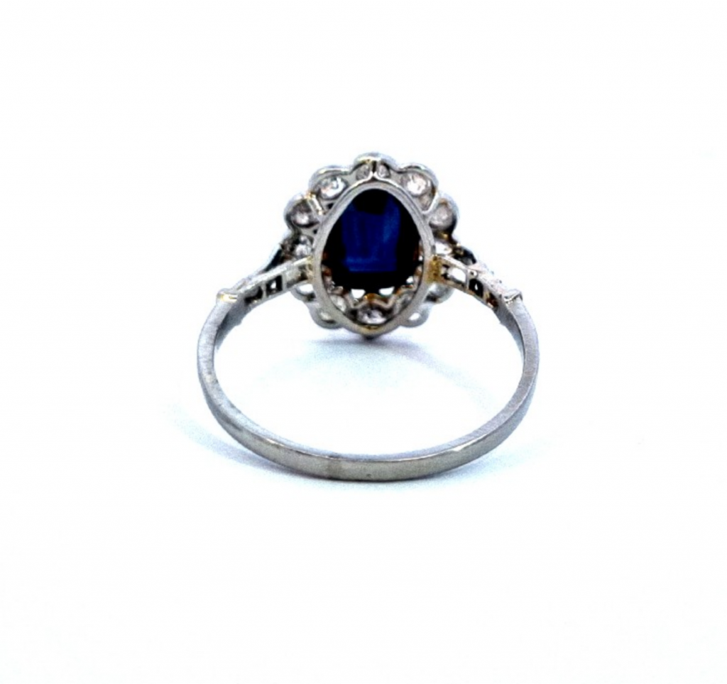Platinový prsten se safírem a diamanty, vel. 56