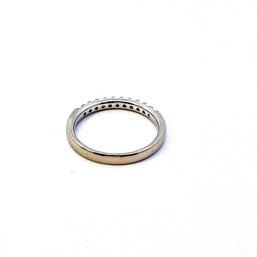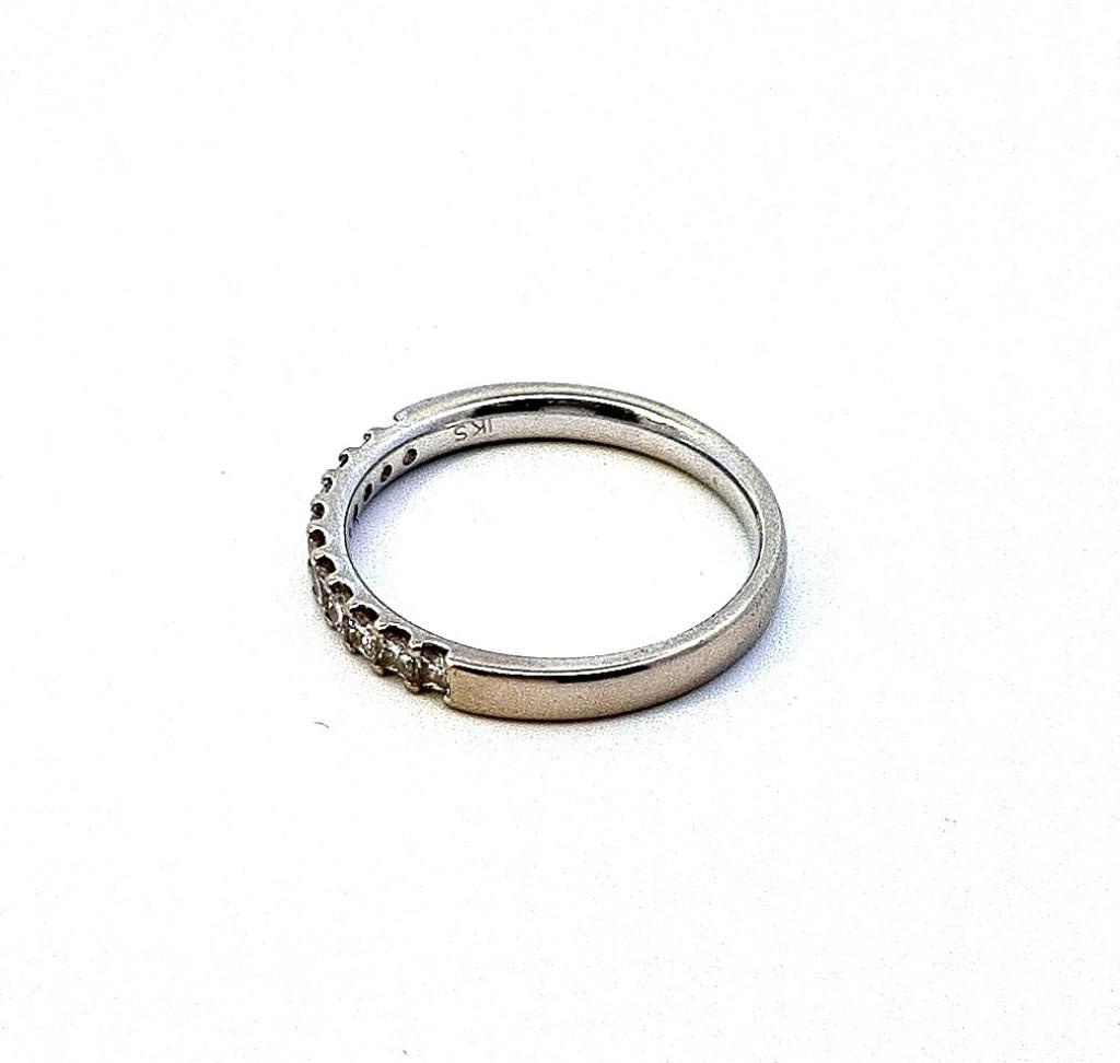 Zlatý prsten o ryzosti 585/1000, punc labuť, váha 2,51 g, velikost 54, v nejširším bodě 23 mm. Kámen - diamant - brus princess - celkem 11 ks, cca 0,67 ct.